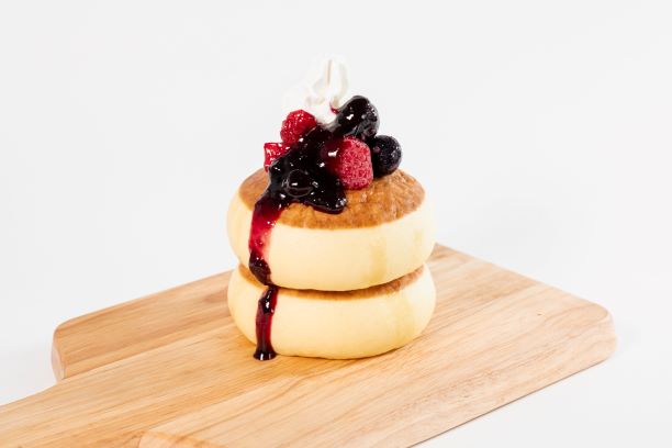トレンドの「ふわふわした食感」から、今回はさらにホットケーキの食感を表現するために生地の配合を見直し、さらにしっとりふんわりした食感になっています。