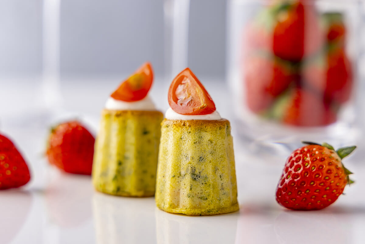 カヌレ型で用意された「春菊のケークサレ」は、しっとりとした生地と春菊のほろ苦いおいしさを存分に楽しめる一品。