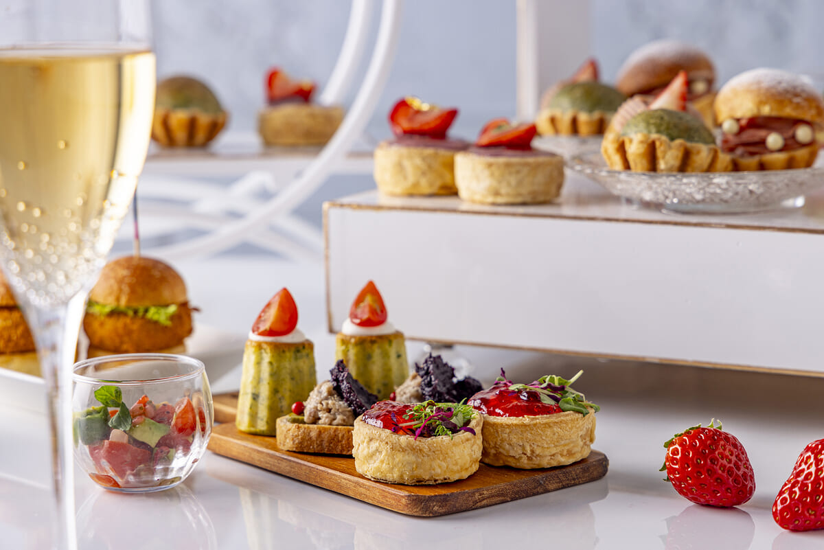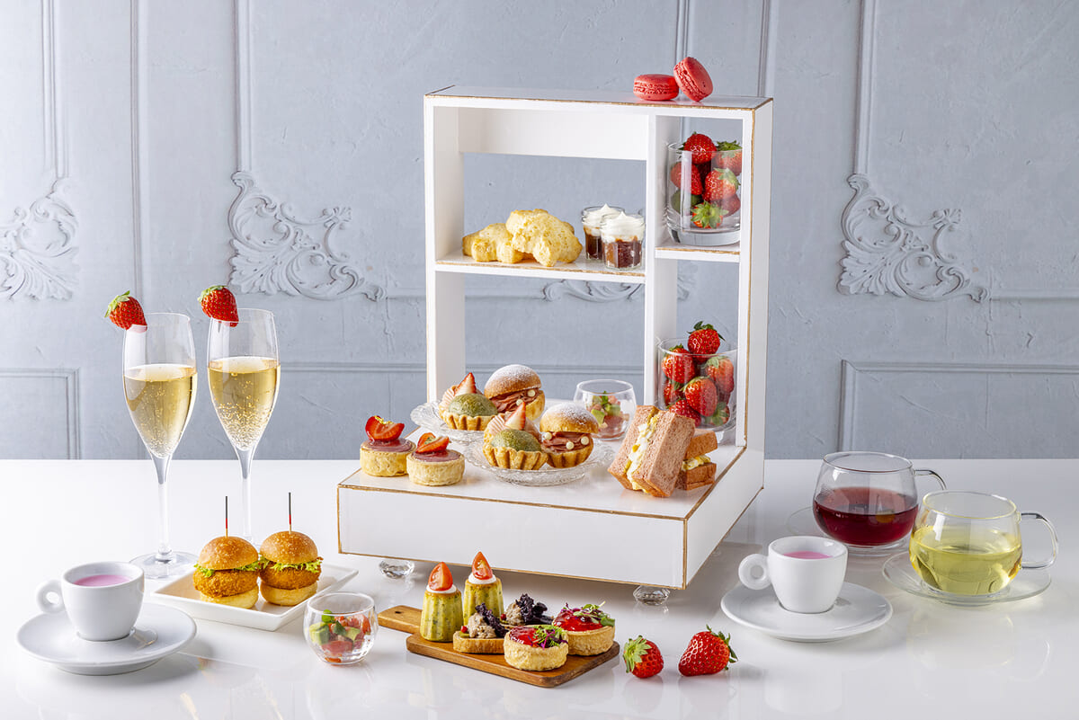 10種類以上のパンやサンドイッチに加え、「マーブルラウンジ」のいちごスイーツビュッフェから厳選した2種類のスイーツとフレッシュストロベリーを楽しめるアフタヌーンティーです。