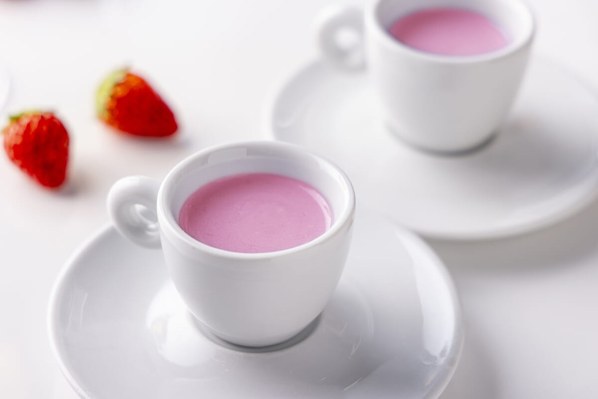 鮮やかなピンク色の「ビーツ入りポテトのポタージュ」、