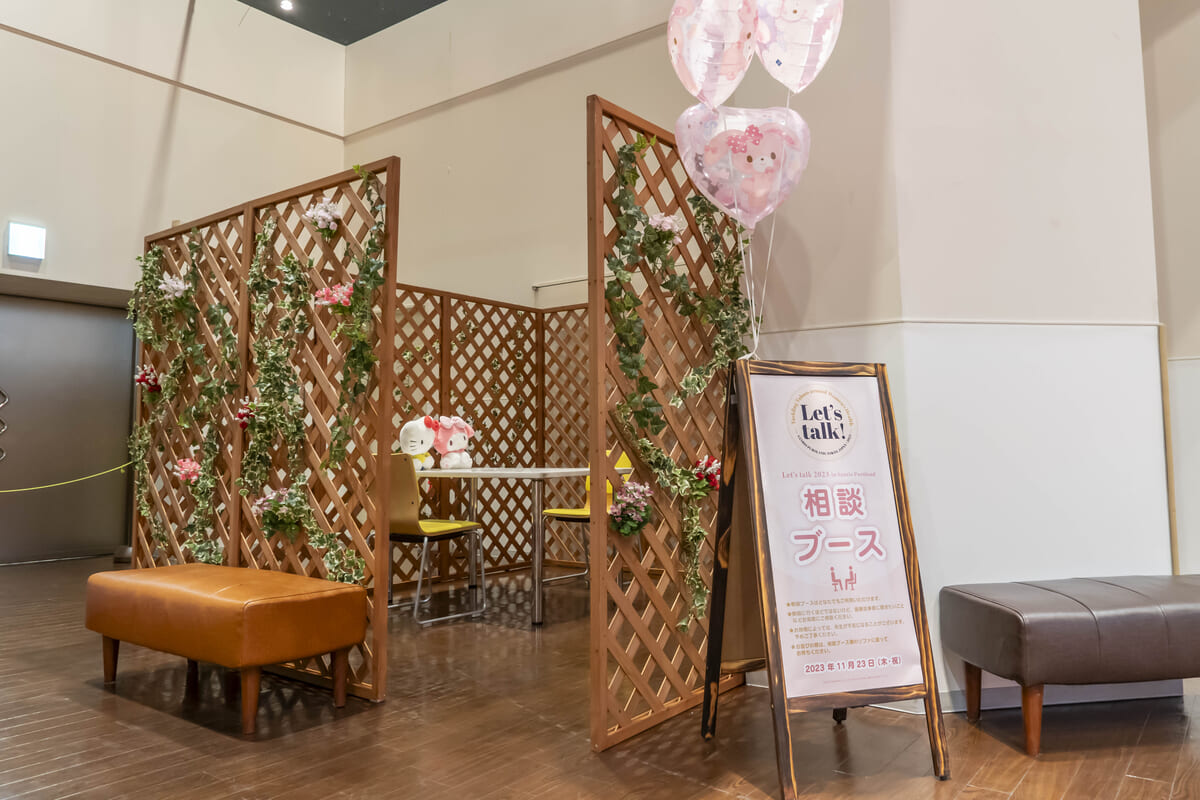 当日は、サンリオキャラクターのぬいぐるみや、カフェテラスのイラストなど話しやすさを意識したメイン会場で、専門医などを招いてのトークセッションを実施。