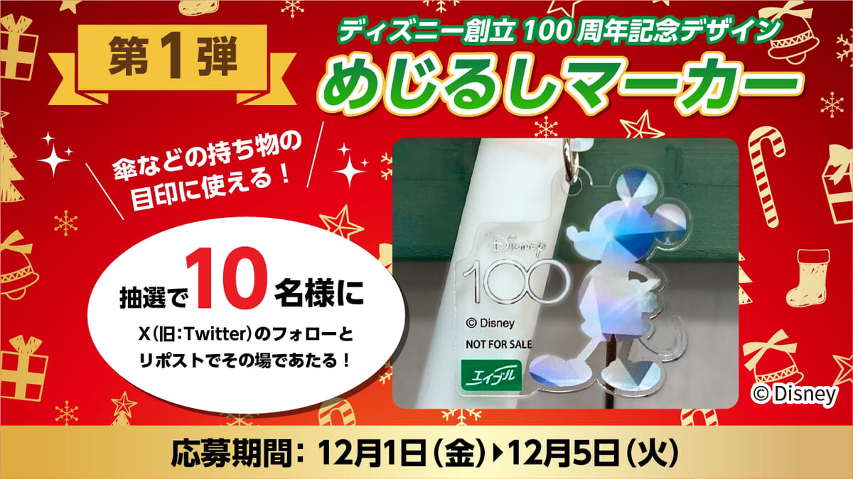 第1弾は、傘などの持ち物の目印に使える「めじるしマーカー」を抽選で10名にプレゼント。
