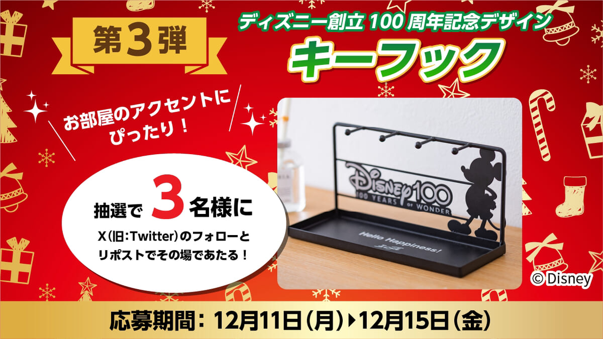 第3弾は、お部屋のアクセントにぴったりな「キーフック」を抽選で3名にそれぞれプレゼント。