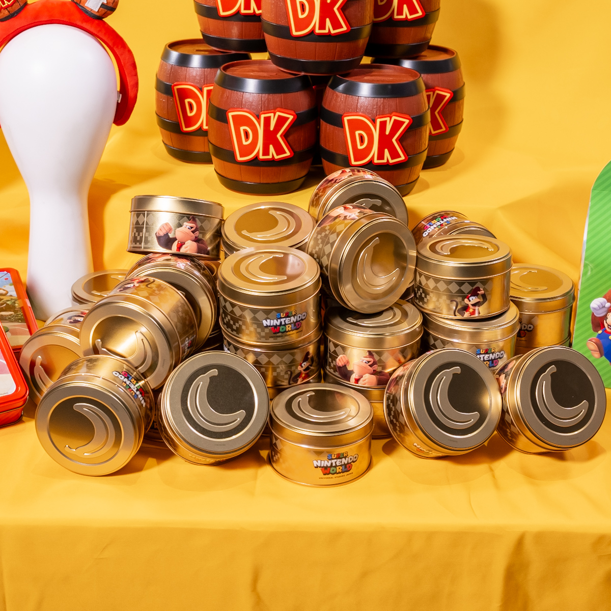 「ドンキーコング」をモチーフにしたカチューシャやお菓子。