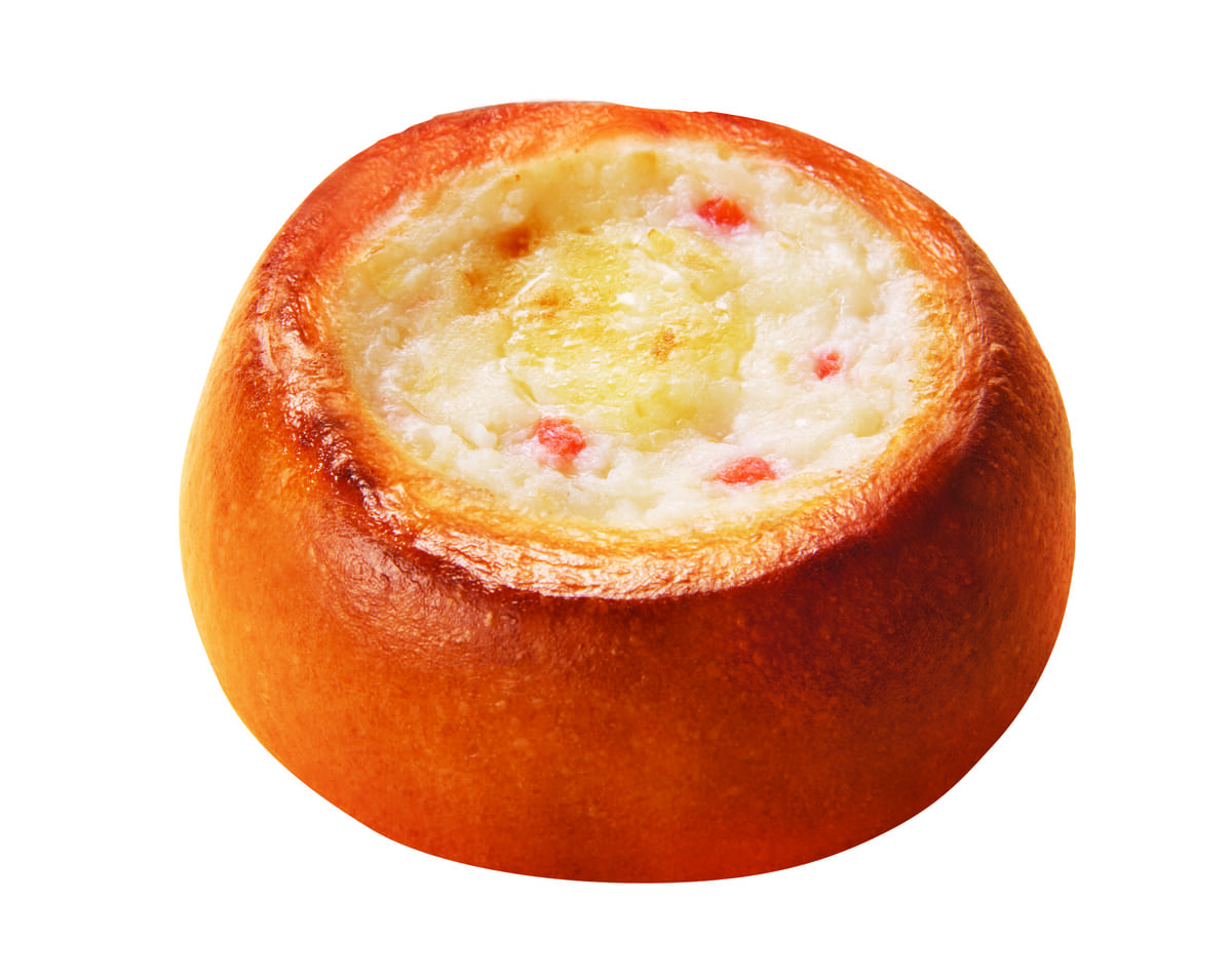 今回登場する第2弾「こんがりビストロまん とろ~り濃厚チキンクリーム味」は、中に、モッツァレラチーズ、ゴーダチーズ、パルメザンチーズ、カマンベールチーズなどの焼きチーズに加えて、チキンクリーム味のホワイトソースをたっぷりと入れた、とろ~り濃厚な味わい。