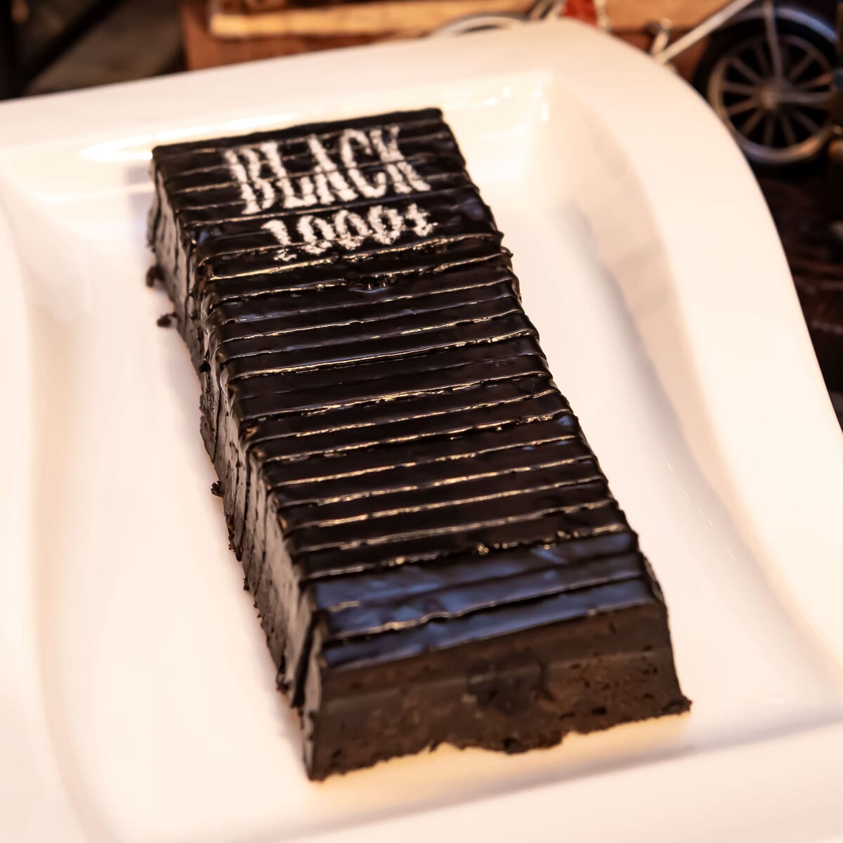 ガトーショコラの黒さにとことんこだわり、チョコレートに茶炭を加えて、真っ黒な色合いに仕上げられています。