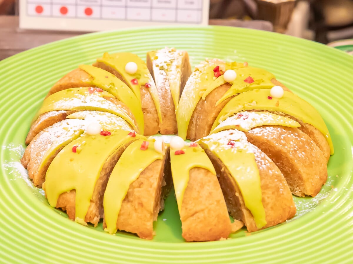 ドライストロベリーや粉糖をトッピングし、クリスマスらしい見た目に仕上げられています。