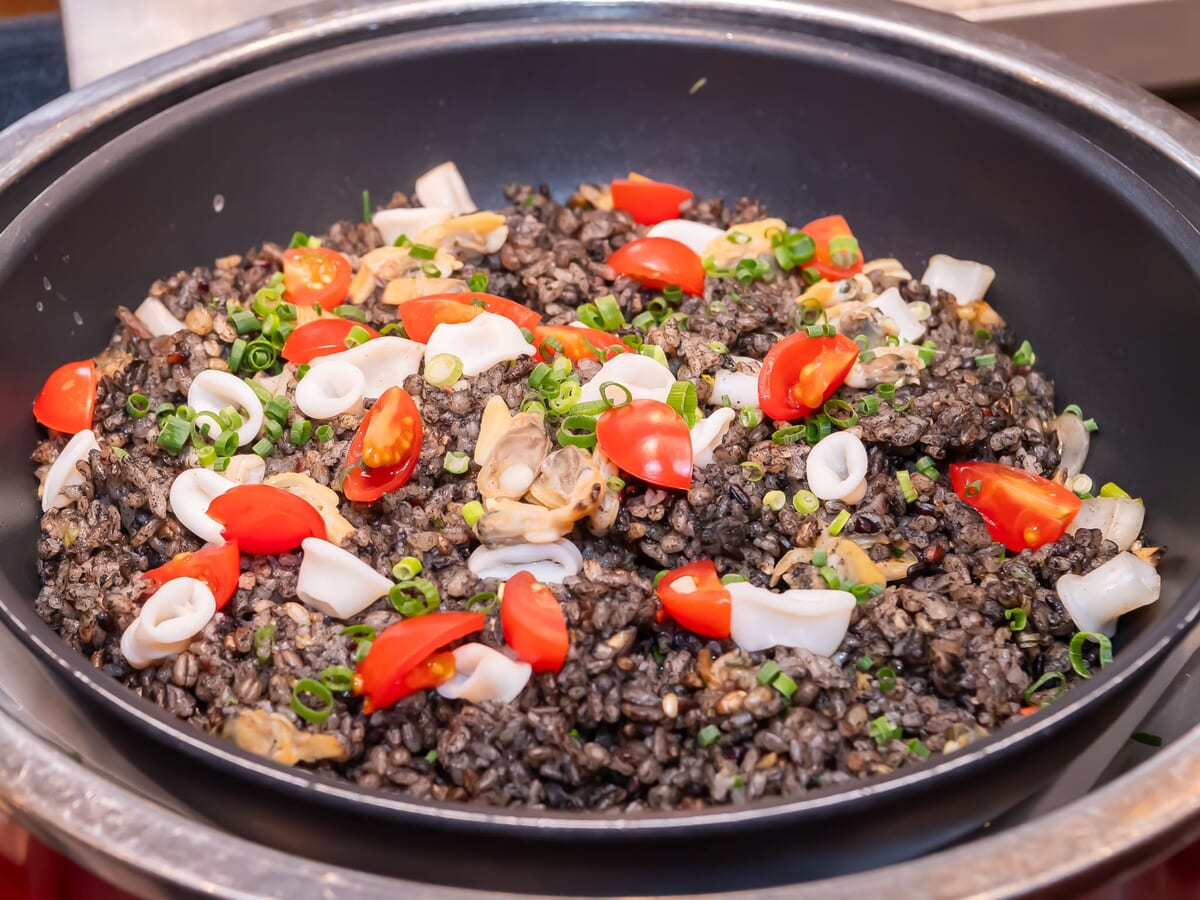 海鮮の旨みが詰まった、イカ墨のピラフ。