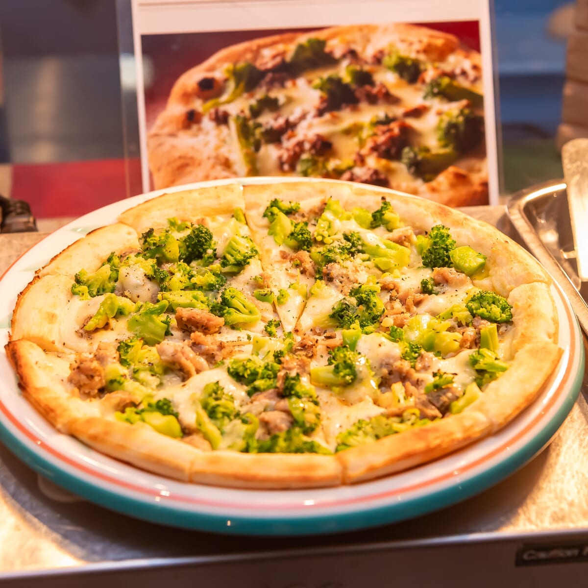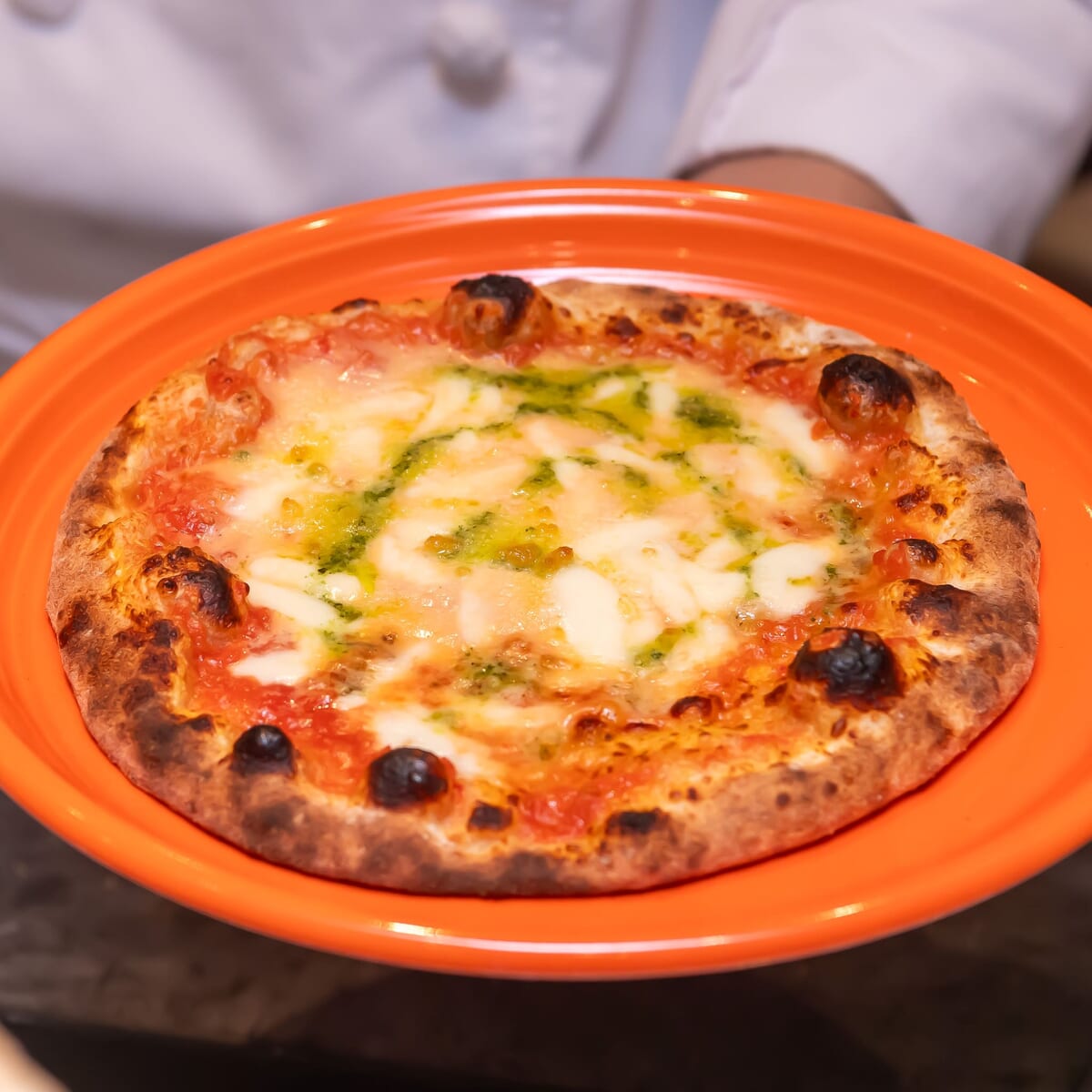全粒粉の生地を伸ばして焼き上げたピッツアは、もちもち食感で食べ応え抜群です!