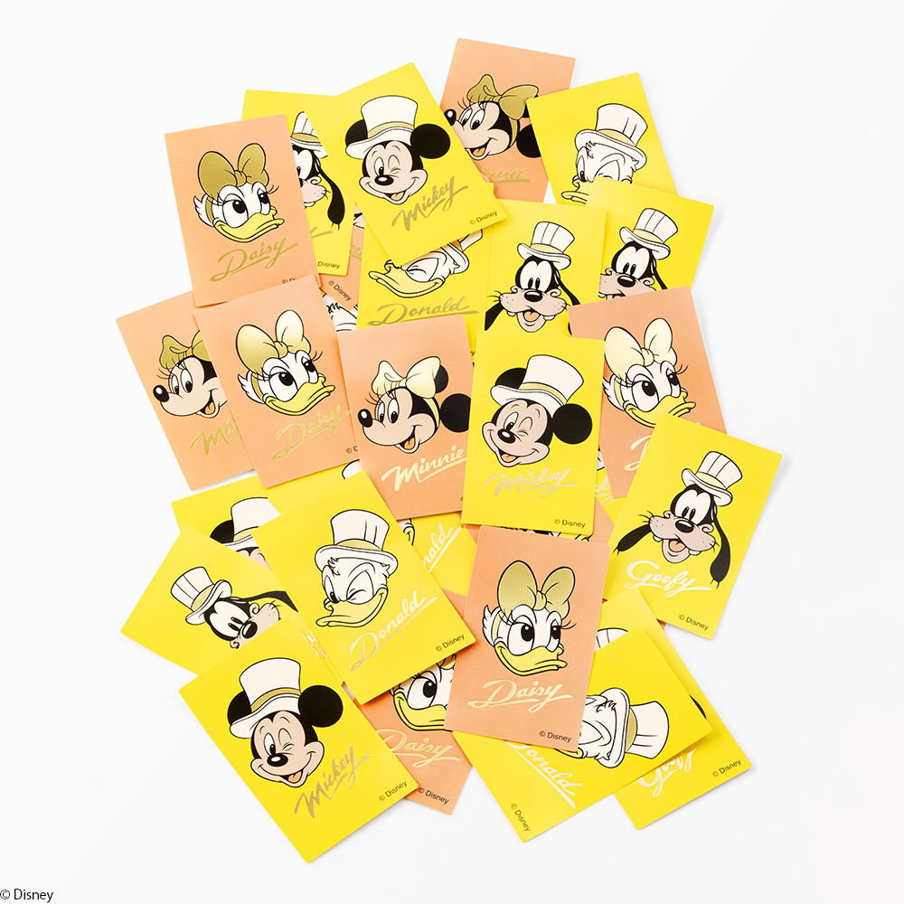 「ミッキーマウス」「ミニーマウス」「ドナルドダック」「デイジーダック」「グーフィー」5種類のうち1枚がランダムで付属します☆