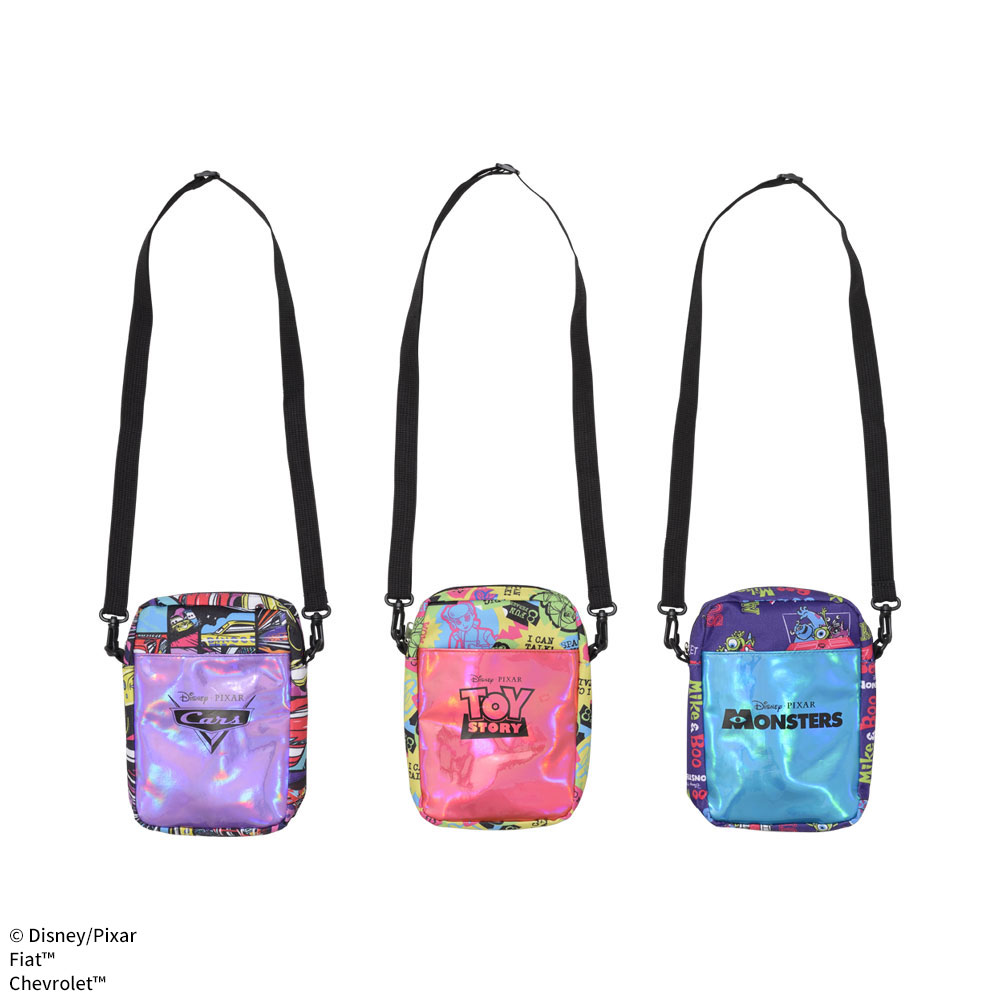 ポケットのギラギラ生地が目を引く、ピクサーキャラクターのショルダーポーチ。