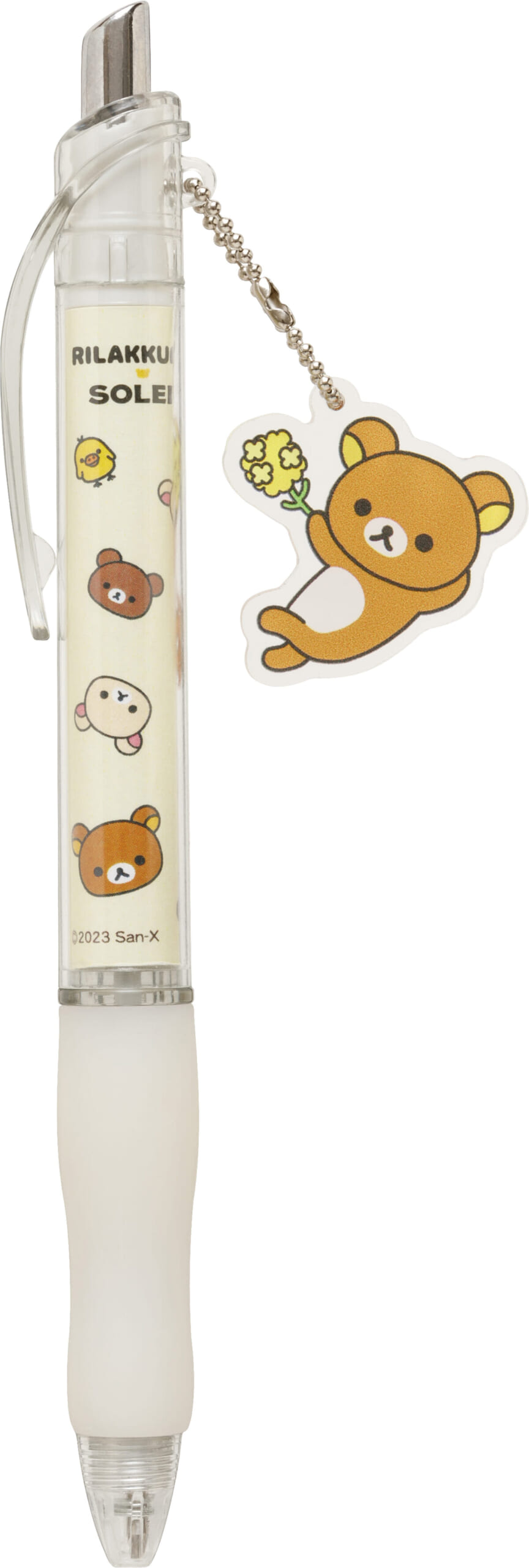 「リラックマ」のゆらゆら揺れるチャームをつけたボールペン。