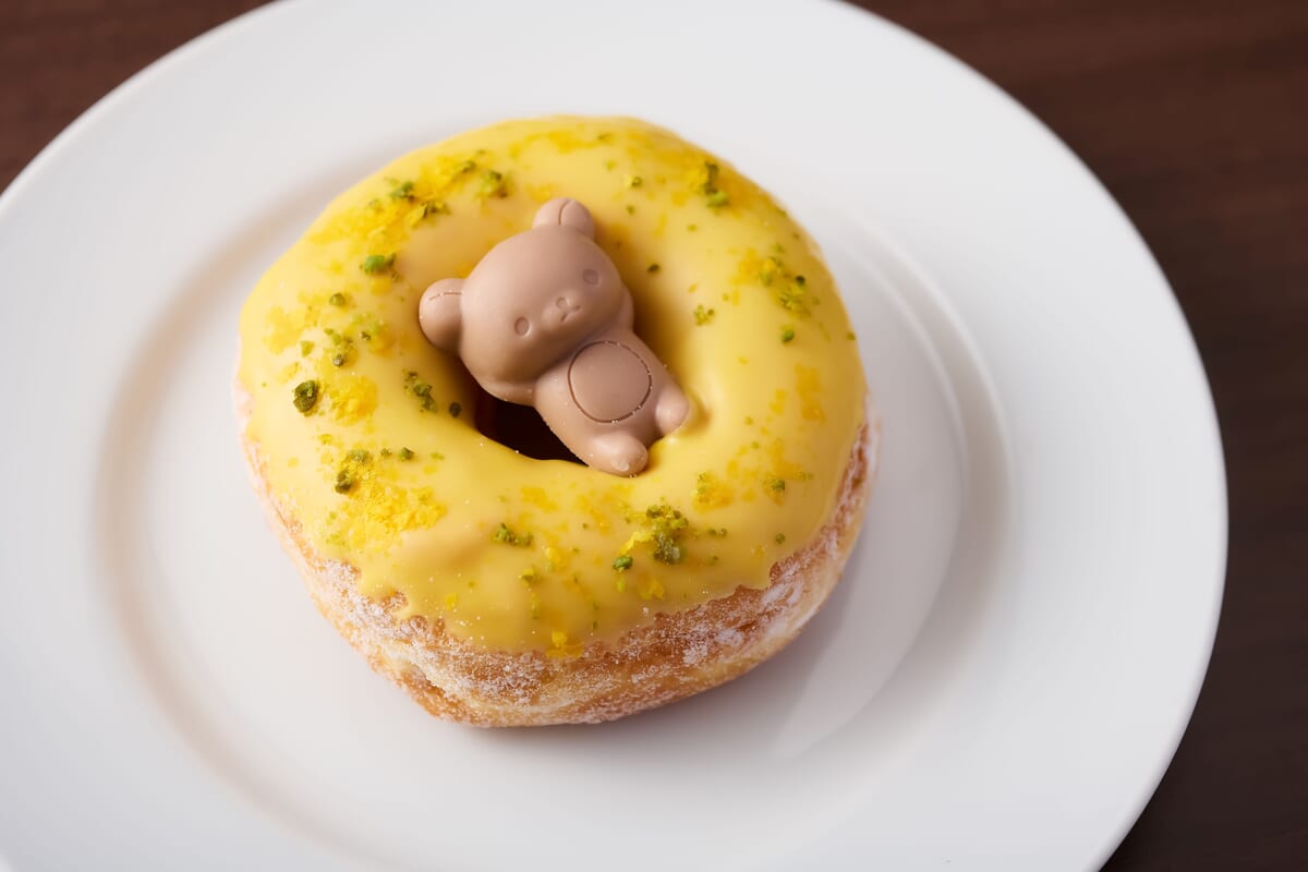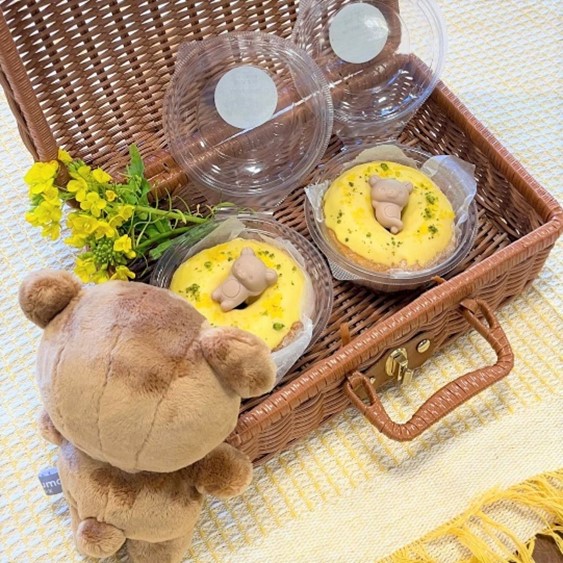 ミサキドーナツ ソレイユの丘店では、ドーナツの上にリラックスポーズの「リラックマ」をのせた「リラックマとお花畑ドーナツ」が販売されます。