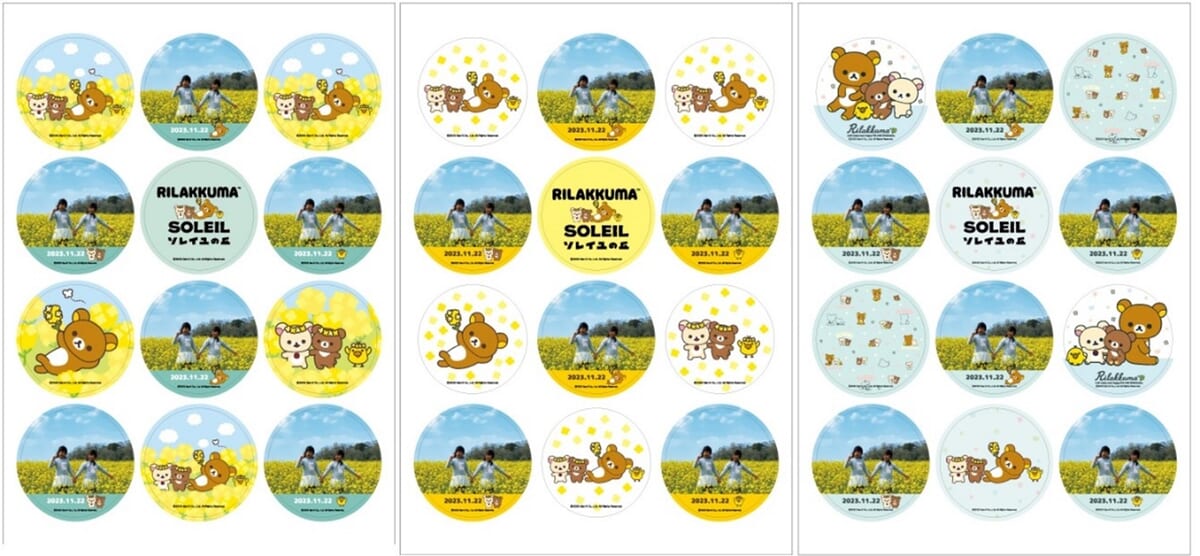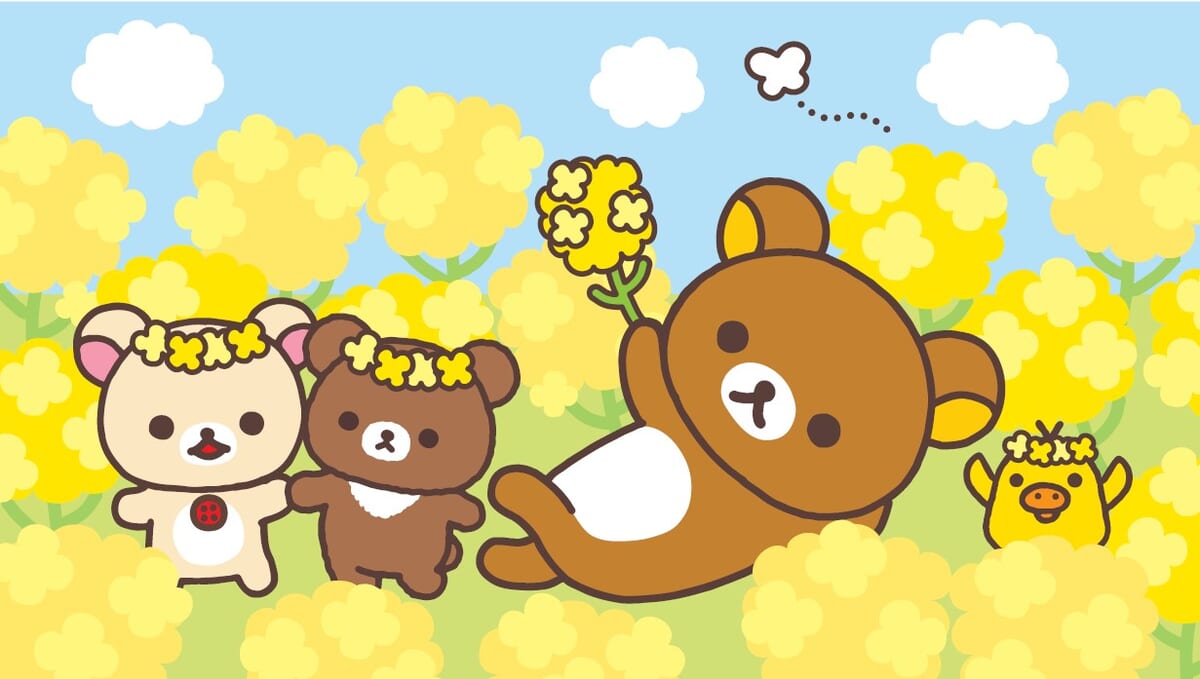 菜の花をもつ「リラックマ」や両手を広げる「キイロイトリ」たちが描かれています。