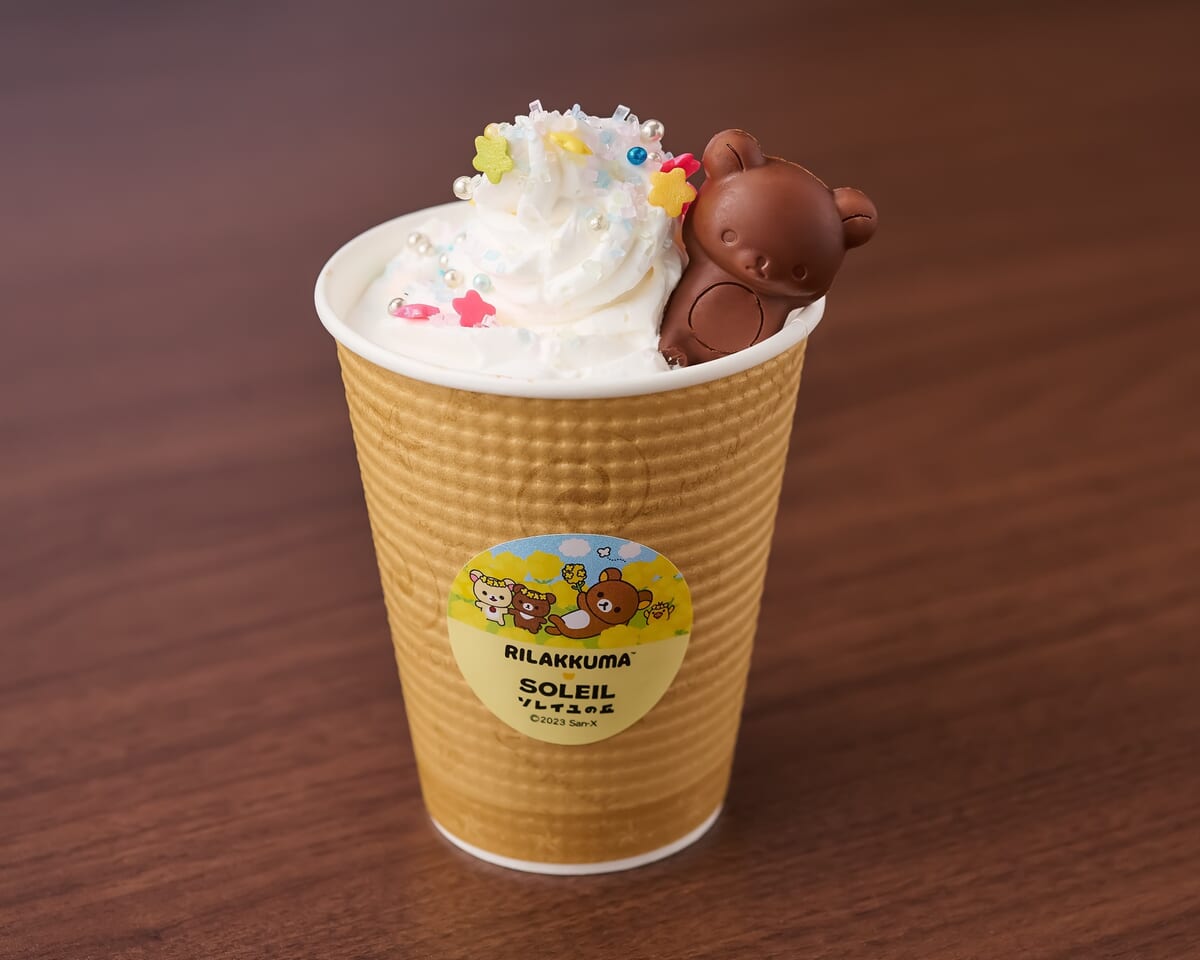 たっぷりのクリームやアラザン、「リラックマ」のチョコレートをのせた、フォトジェニックなホットドリンクです。
