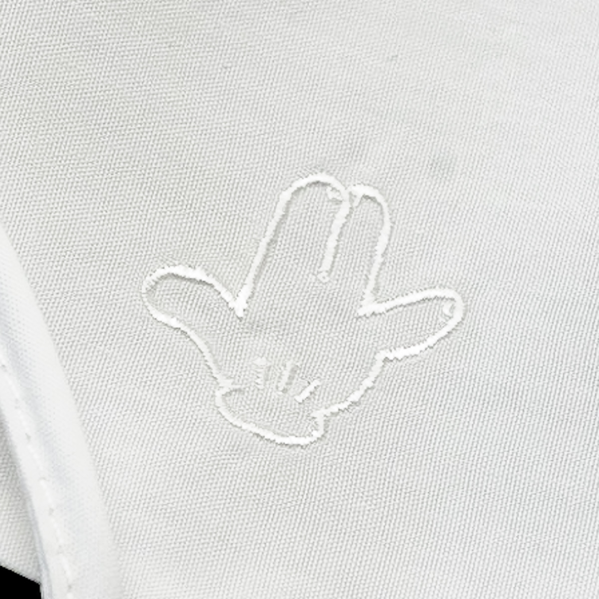 襟には「ミニーマウス」の手の形が刺繍されています。