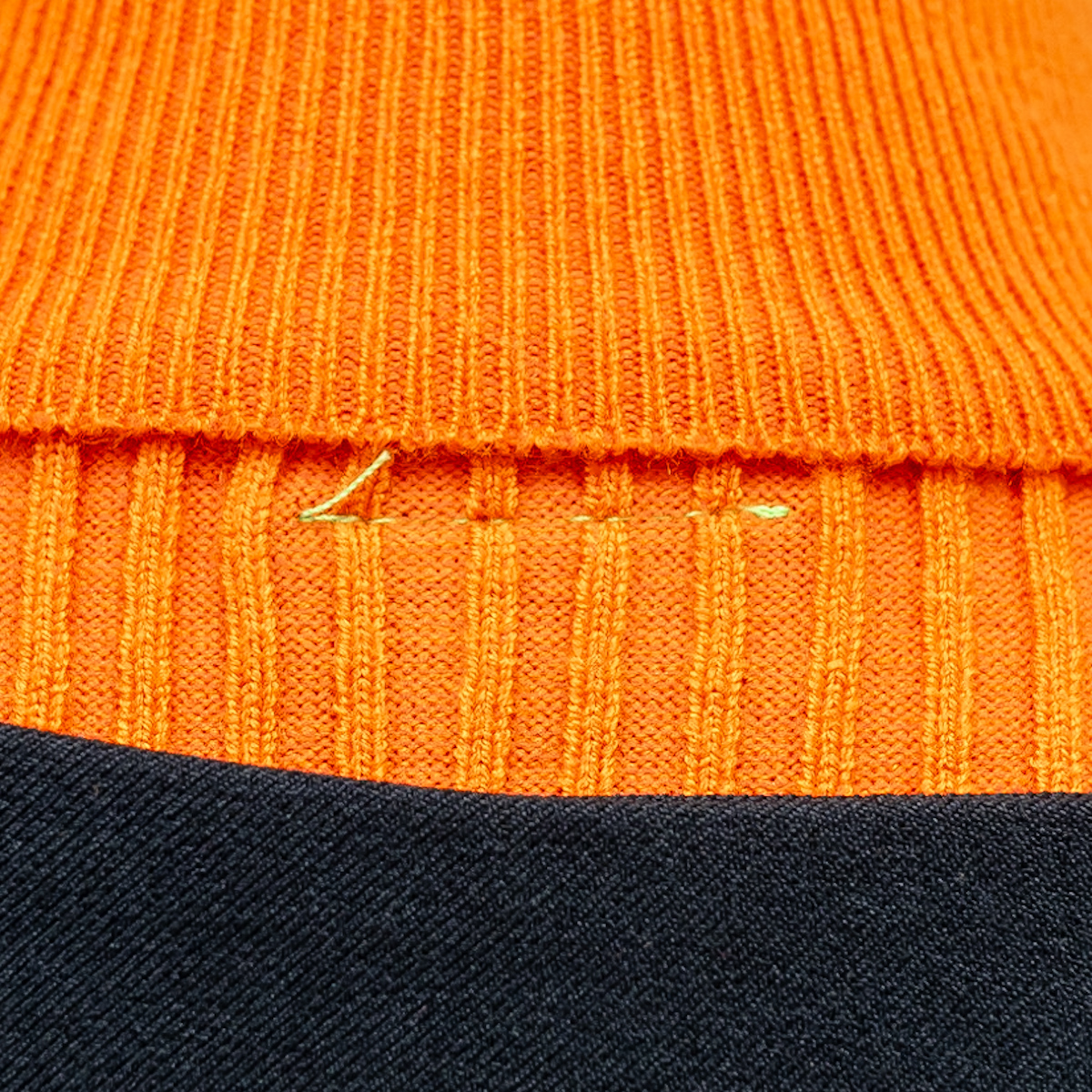 ニットはあえて裏返して着ちゃったようにみえるデザインに。
