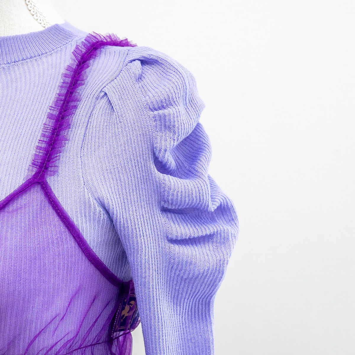 肩パフスリーブでヒレのような軽やかさを演出します。