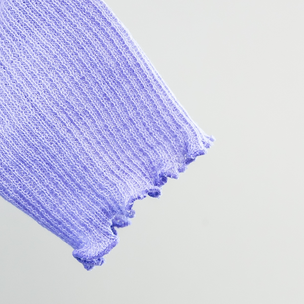 ニットはほんのりシアー感のある素材で軽い印象に。
