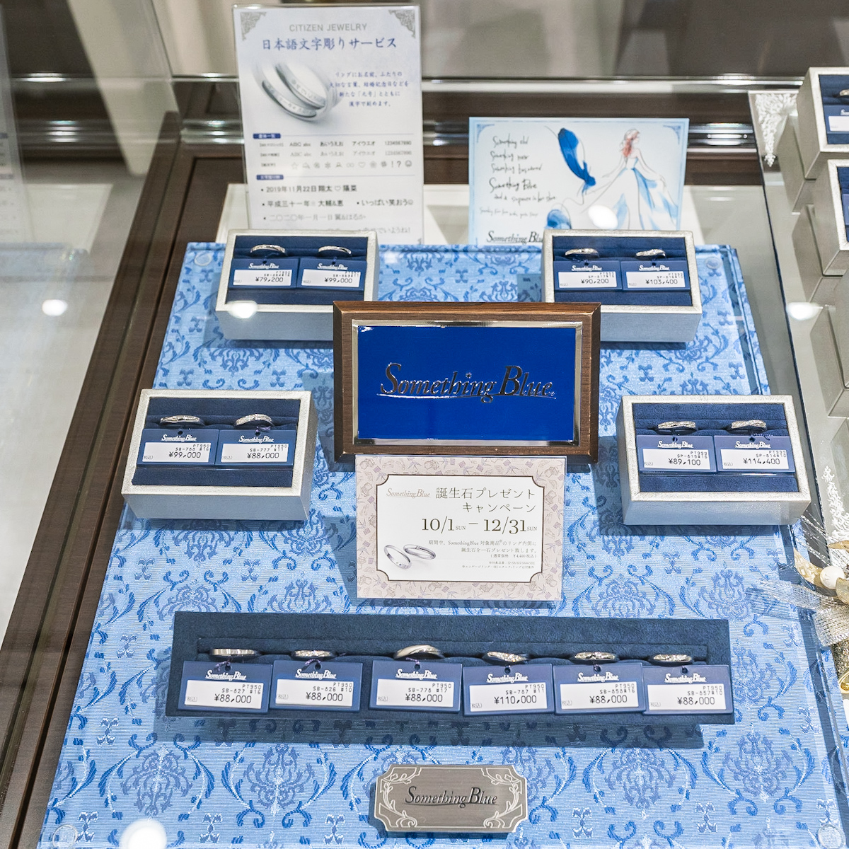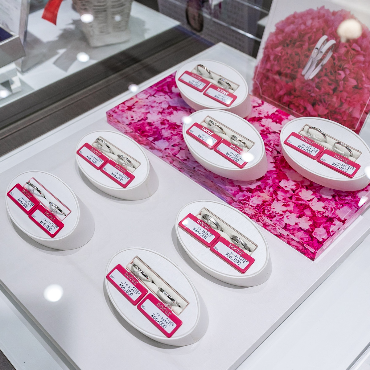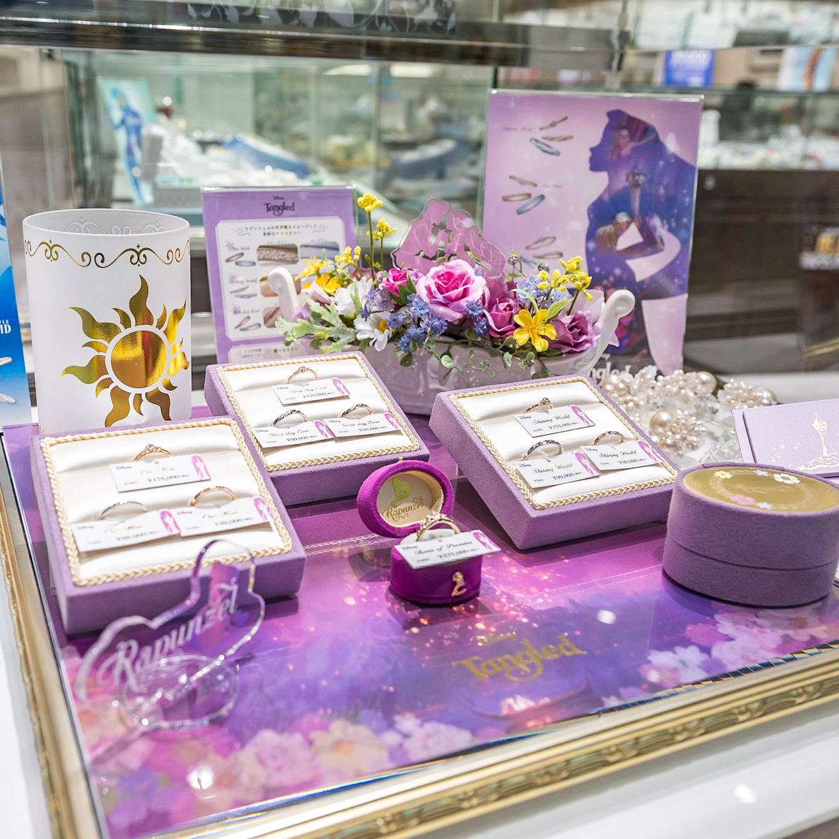 ディズニーデザインジュエリーのほかにも、店頭には様々なブライダルジュエリーが揃っています。