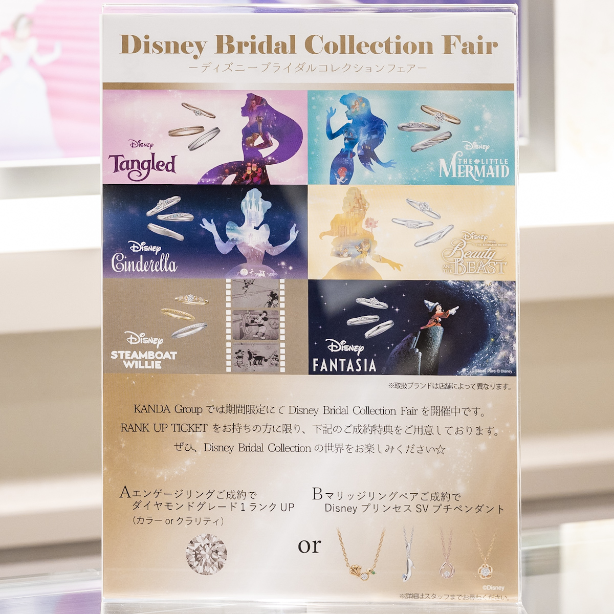ジュエリーKANDAで開催中の「ディズニーブライダルコレクションフェア」の紹介でした。