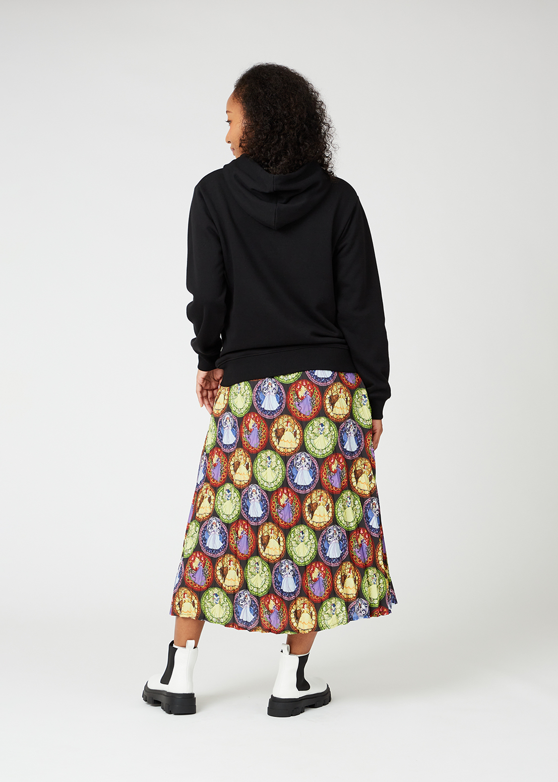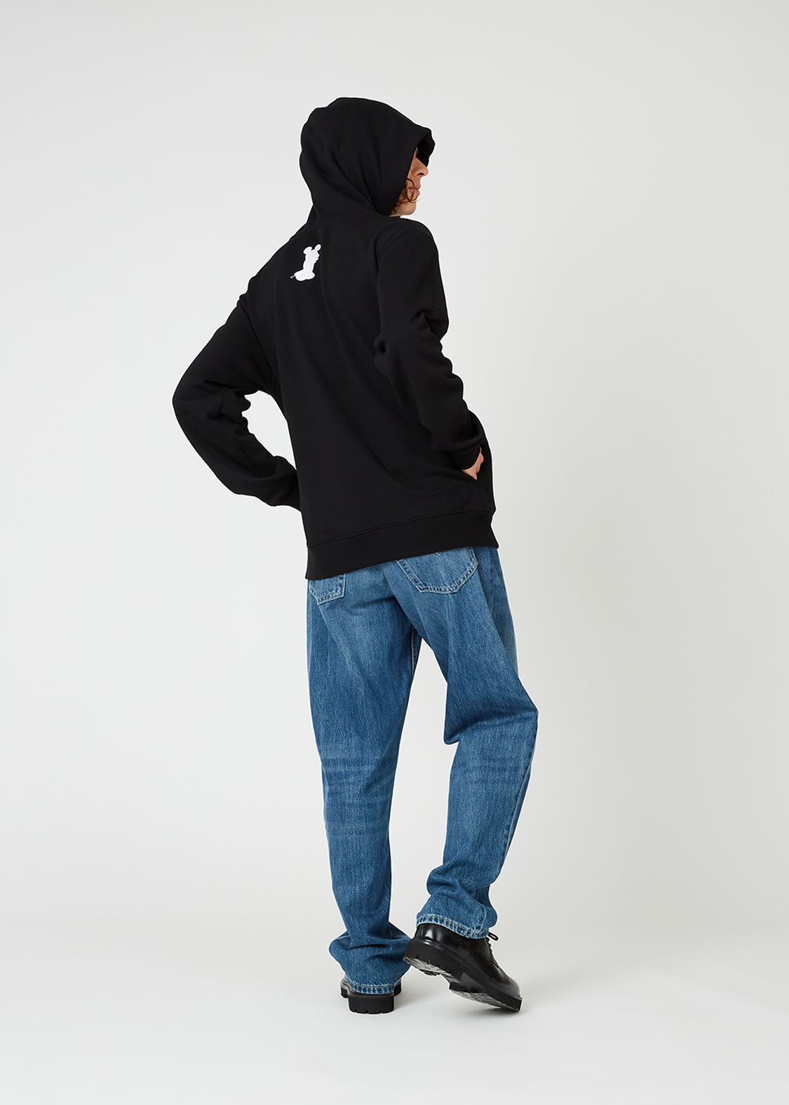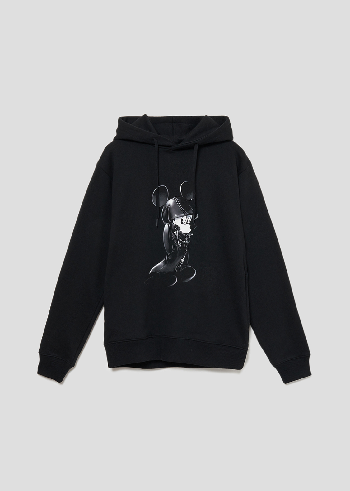フードに隠れるように刺繍された「王様ミッキー」のシルエットがアクセントになっています。
