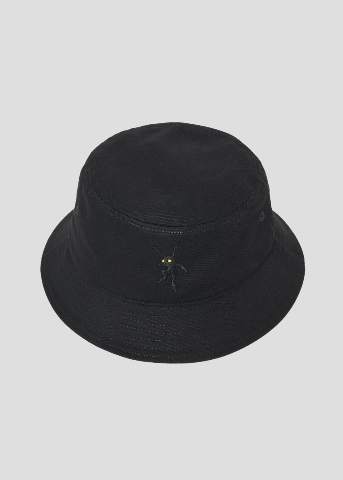 ブラックをベースにした生地に「シャドウ」を刺繍したバケットハット。