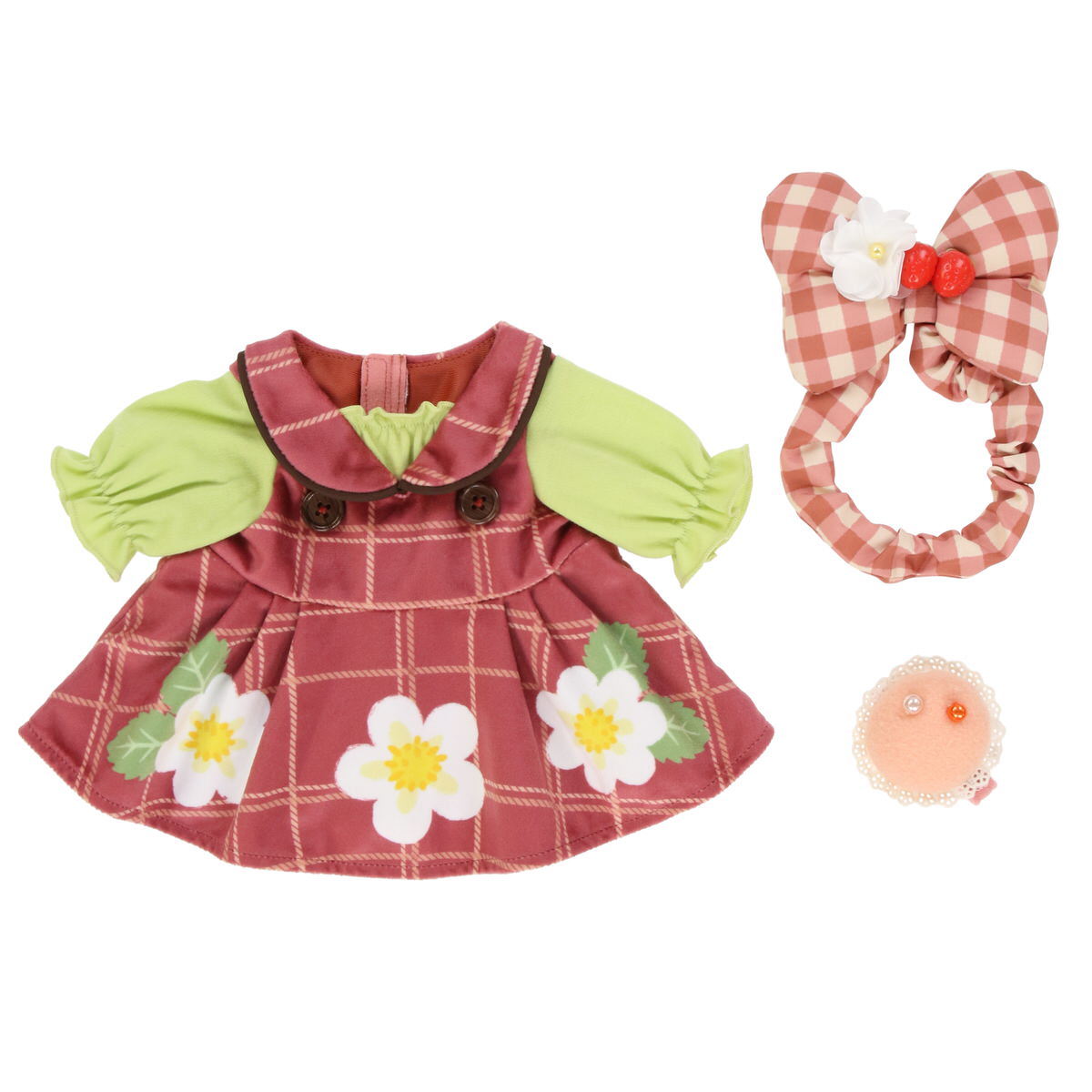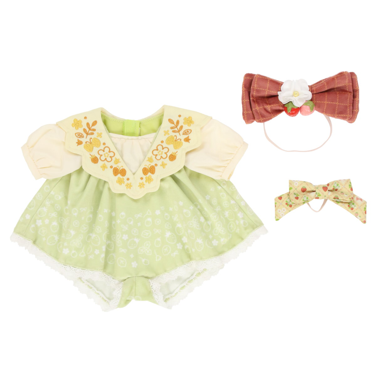 ドレス、リボン、腕に付けられるお花がセットになっています。