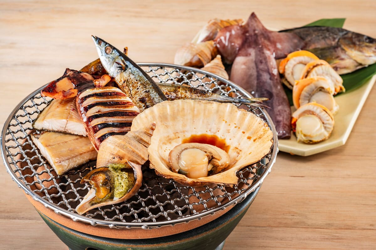 ・炉端焼き(厚岸産 ピリ辛さんま、ホッケ、いか焼き マヨネーズ、北海道産 ほたてのバター焼き(ディナー限定)、北海道産本日の焼き物(ディナー限定)、つぶ貝ガーリックバター焼き、鰰、めんめ開きなど)