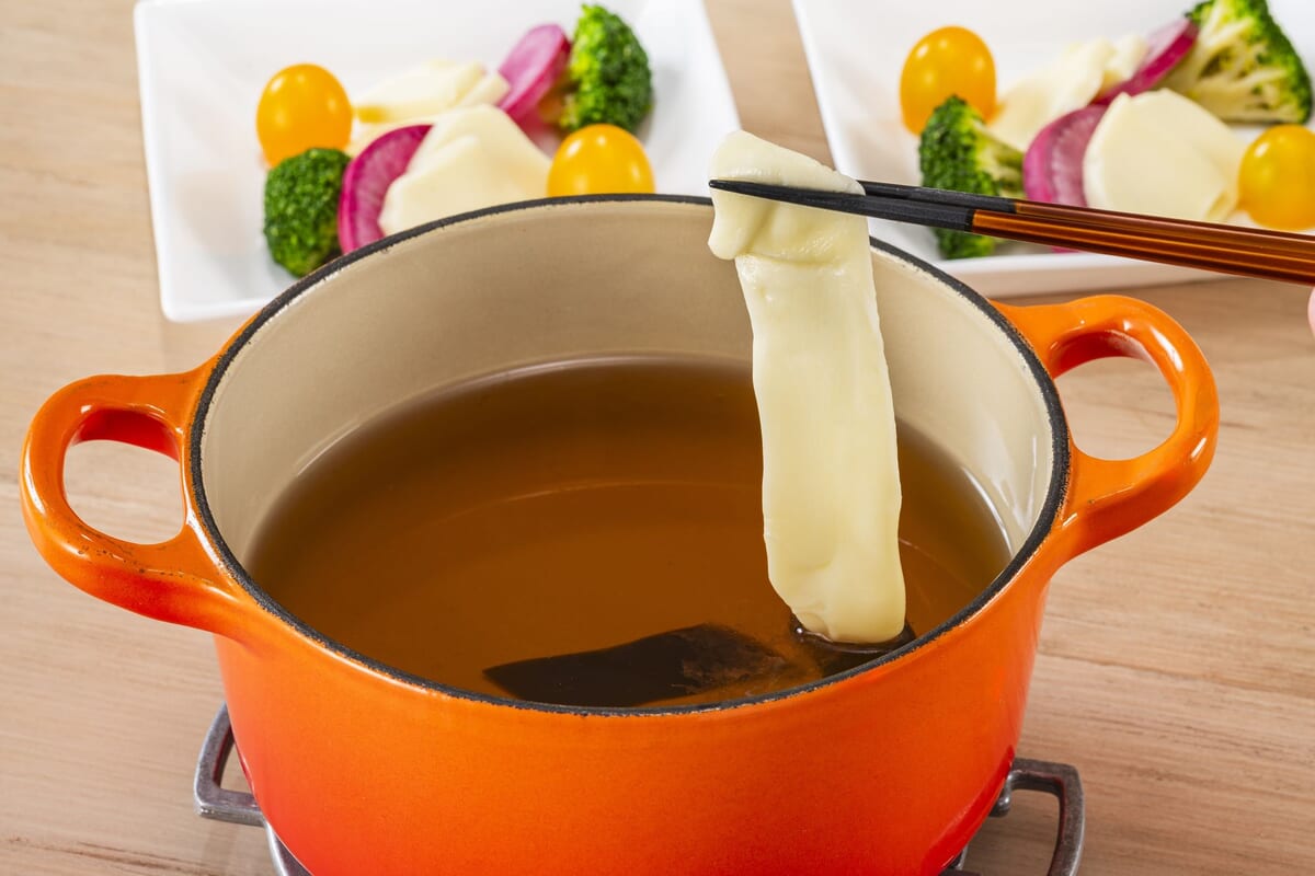 ・モッツァレラチーズのしゃぶしゃぶ 紙鍋にて