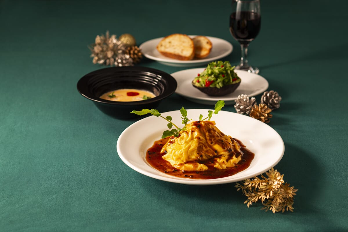 「トリュフ香るふんわり卵のオムバーグ」をメインにした「シェフのおすすめセット」