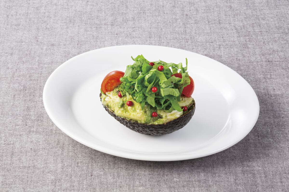 爽やかなレモン果汁も合わせ、ピンクペッパーで彩り豊かに仕立てた「アボカド&チキンのサラダ」と、