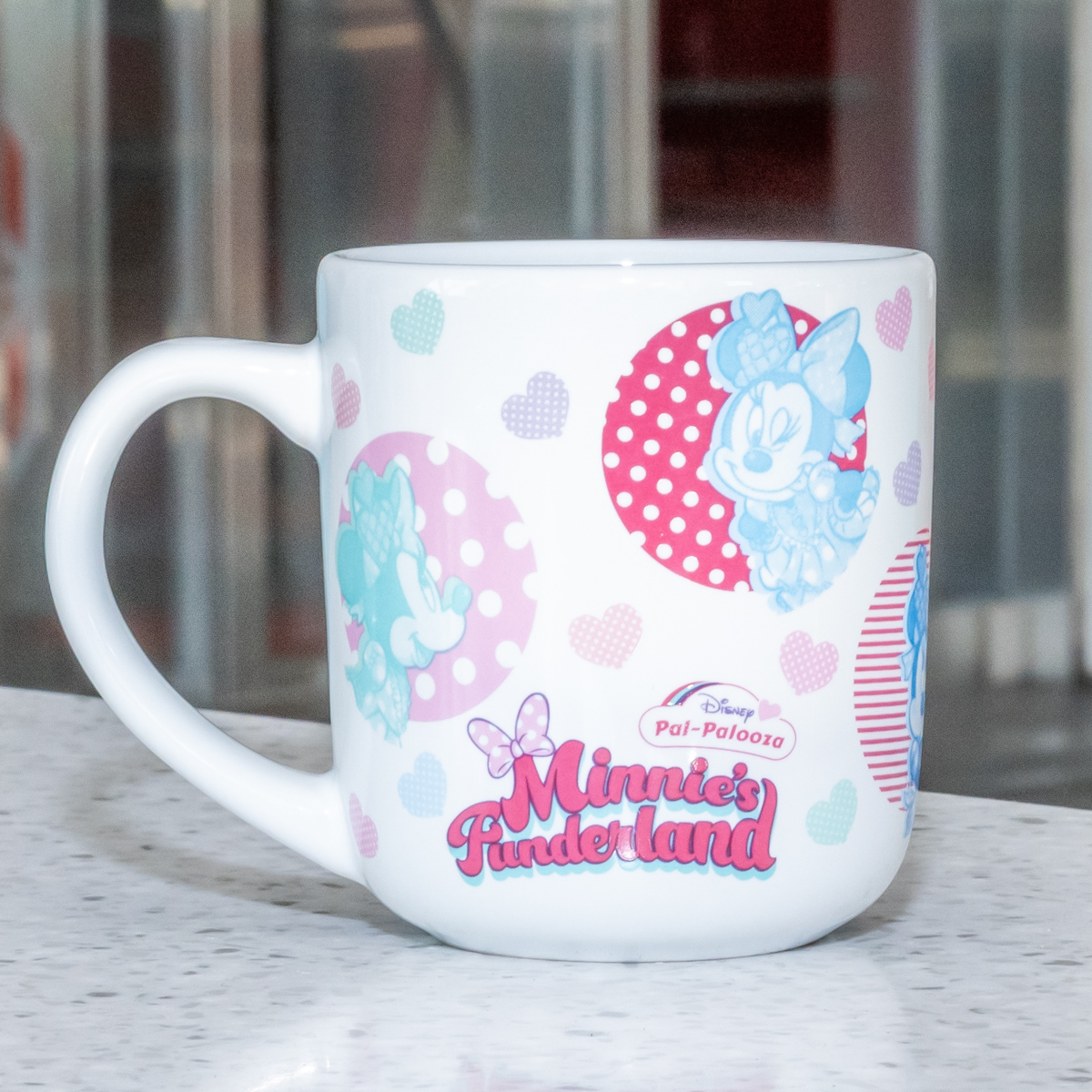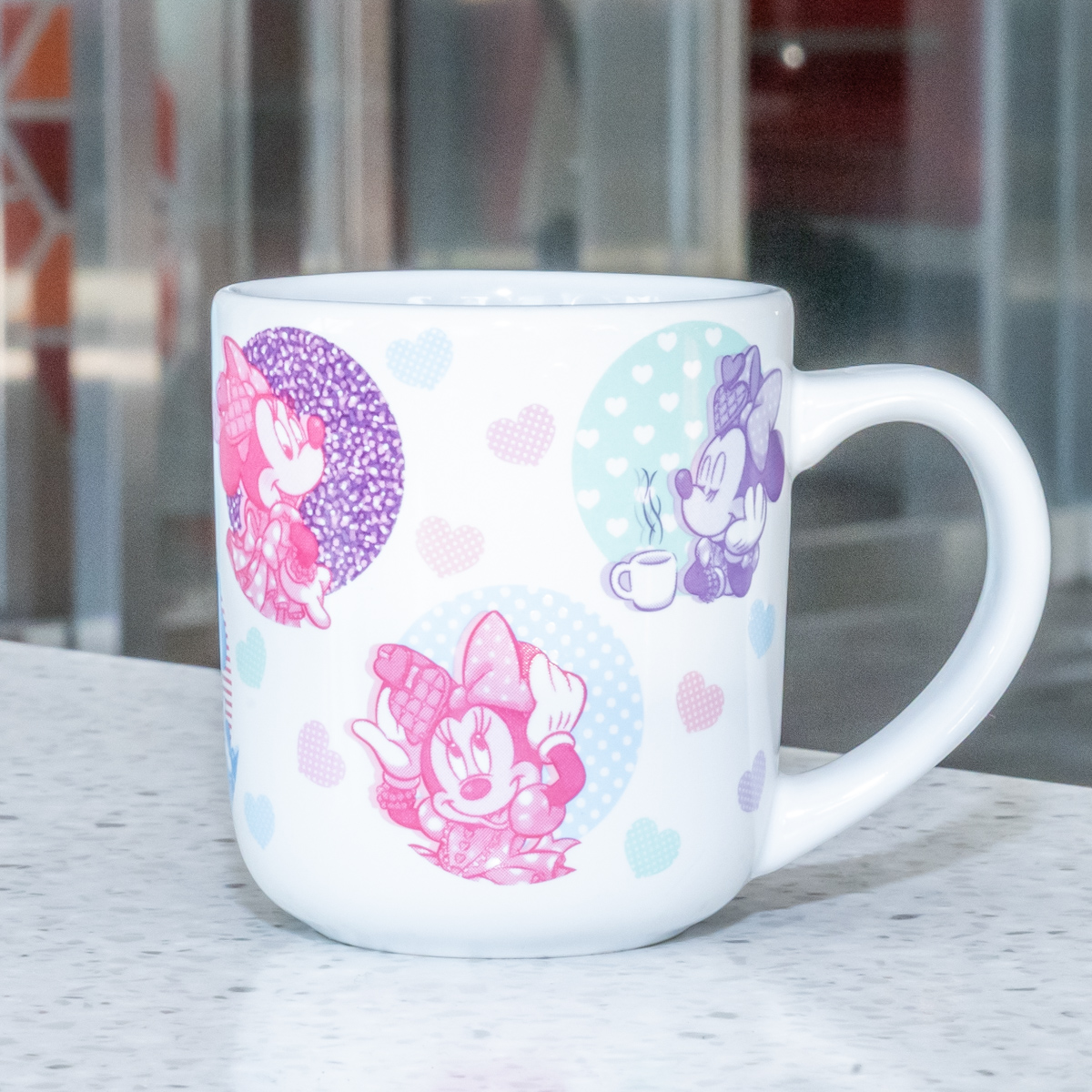 「ミニーマウス」をポップでカラフルに描いたスーベニアカップ。