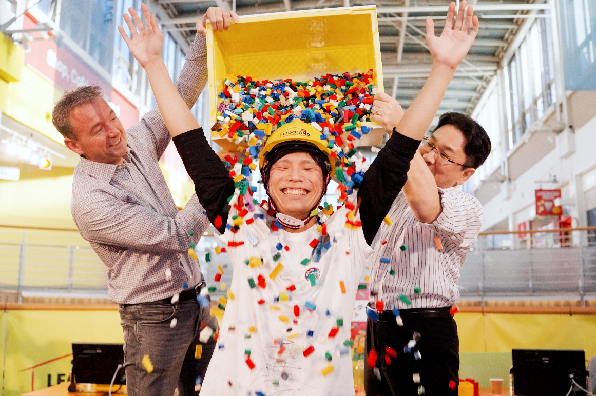 発表・授賞式:レゴランド(R)大阪2代目のマスター・モデル・ビルダーの発表、受賞者へ恒例のブロックシャワー