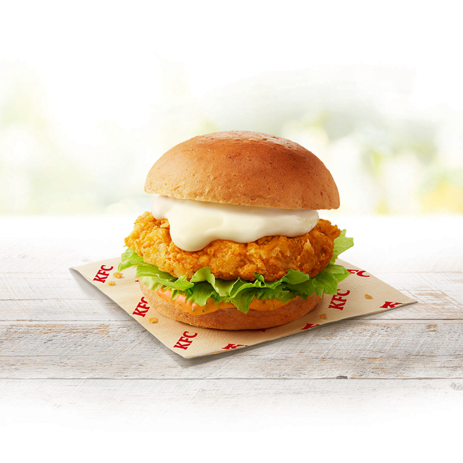 “おぼれる”ほどのチーズソースと、ケンタッキーフライドチキン自慢のやわらかジューシーなチキンフィレが合わさった、最重量級チーズソースのバーガーです。