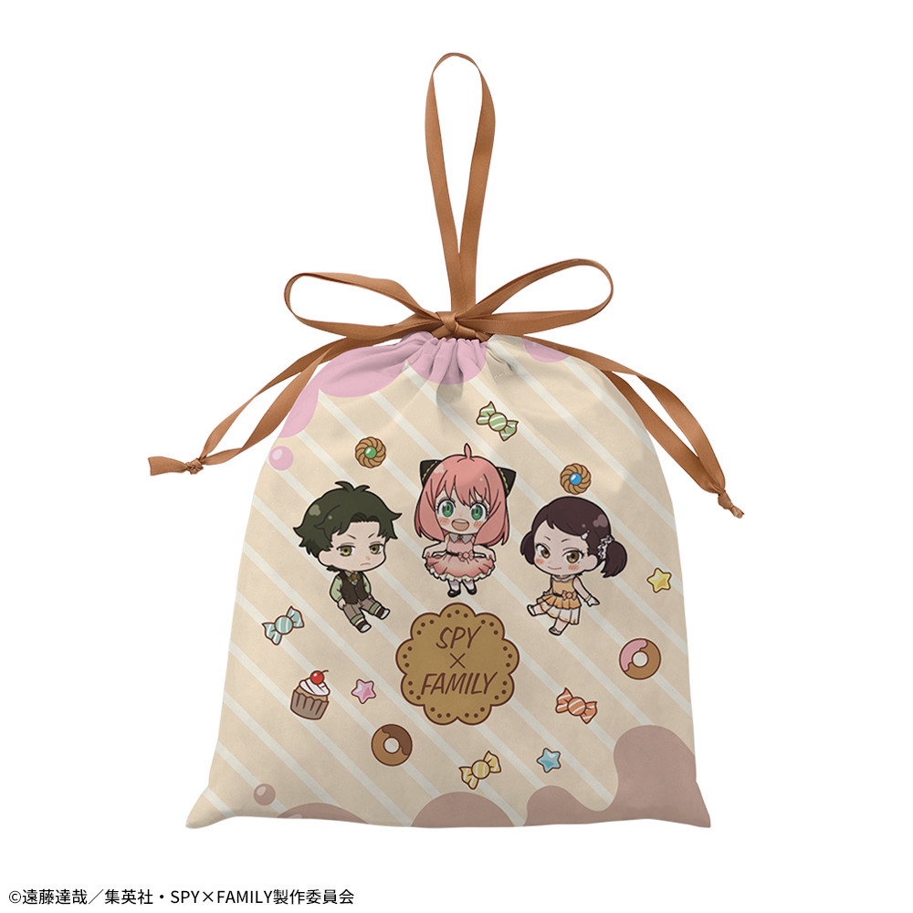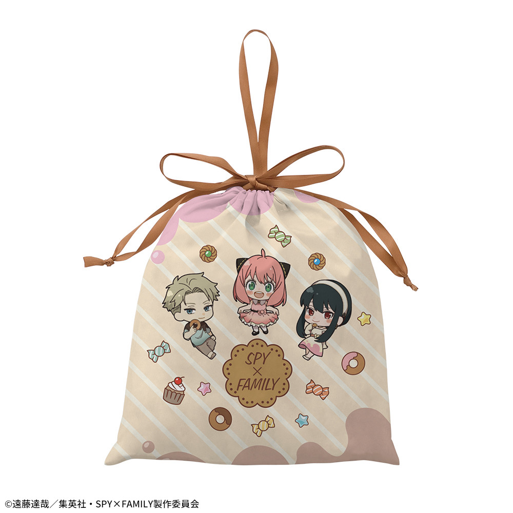 巾着には、お菓子やケーキと共に「フォージャー家」の3人をデザインしたアートと、