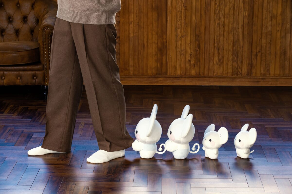 大きな2匹と子ども2匹をセットにした、ほぼ等身大のイッカネズミをデザインしたぬいぐるみです。
