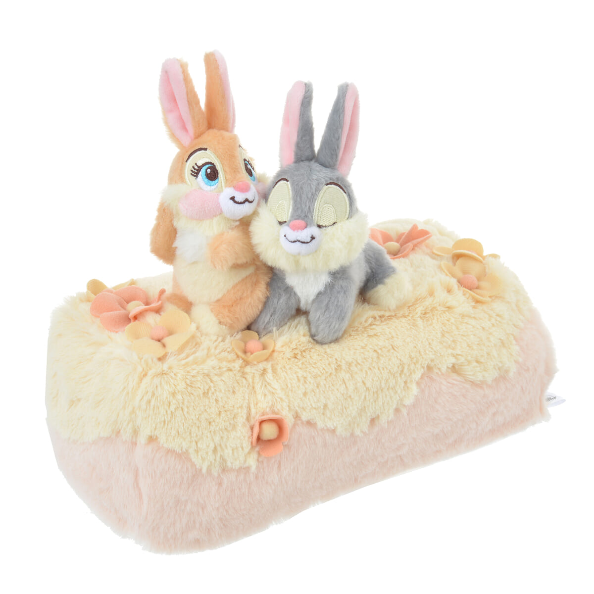 ミス・バニーととんすけのティッシュボックスカバーは、お花に囲まれて仲良く寄り添う姿に癒されるデザイン。