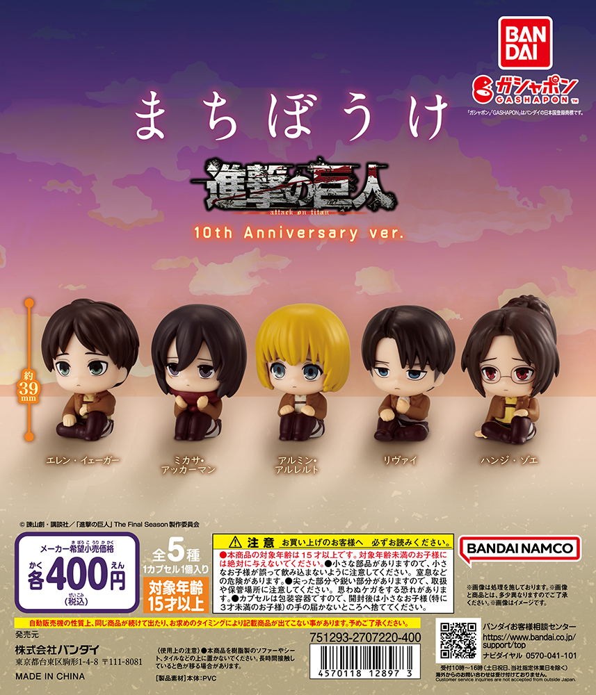 2023年12月第5週より順次販売が開始される、バンダイ ガシャポン「まちぼうけ 進撃の巨人 10th Anniversary ver.」の紹介でした☆