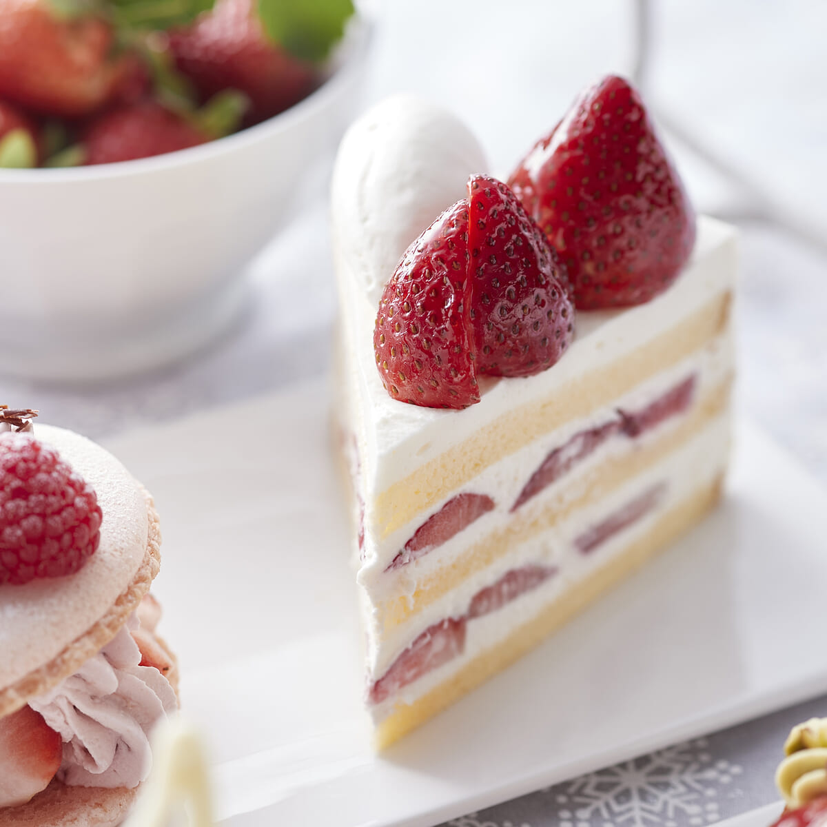 クリームとみずみずしい苺、ふわふわスポンジを使った三位一体の美味しさが堪能できます。