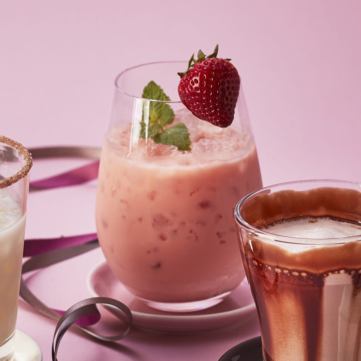 クッキー&チョコレートの甘い香りを纏わせた、香り華やかなストロベリー風味の甘酢っぱいカクテル。