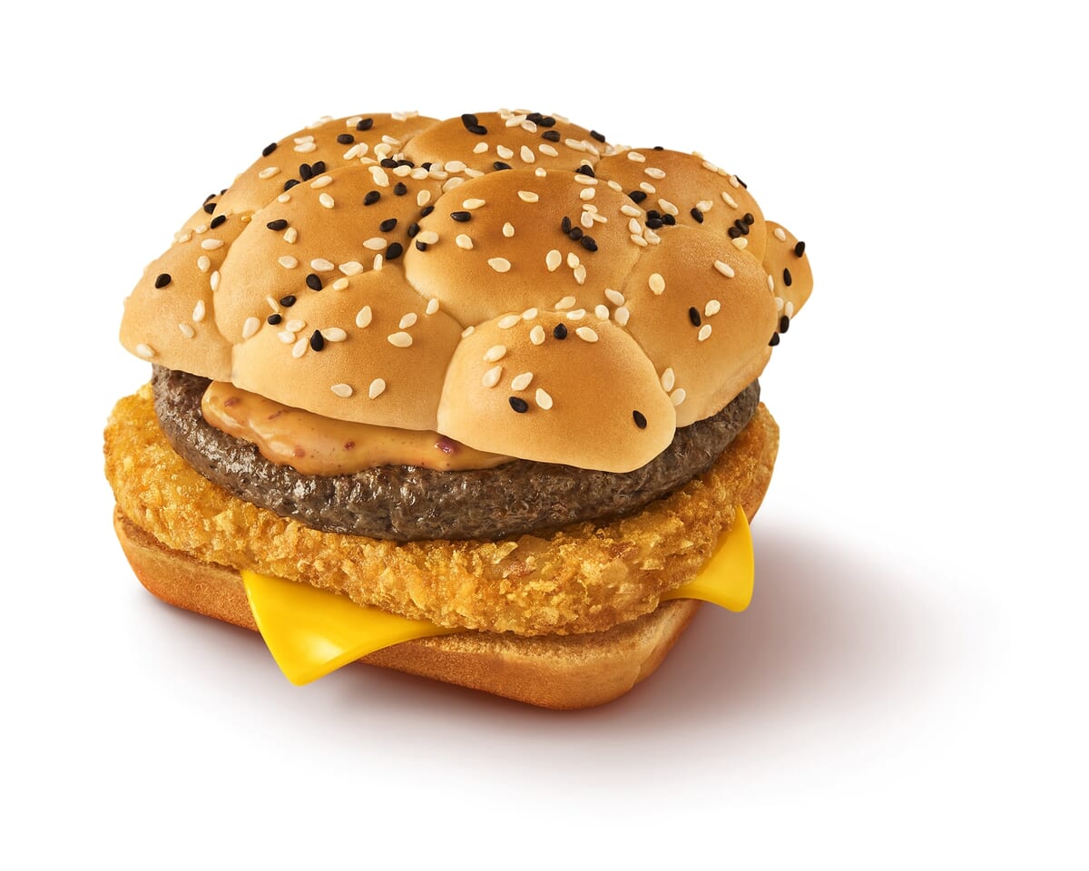 「ゴジラ」をイメージしたゴツゴツのオリジナルバンズでサンドした、ボリュームたっぷりなマクドナルドの自信作です。