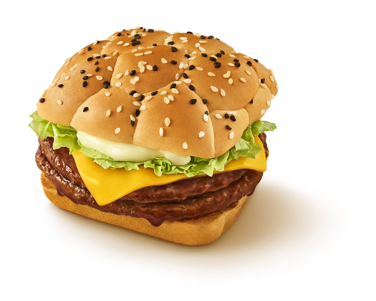 2枚のポークパティをてりやき風味のソースと絡めた「チーズダブルてりやき」