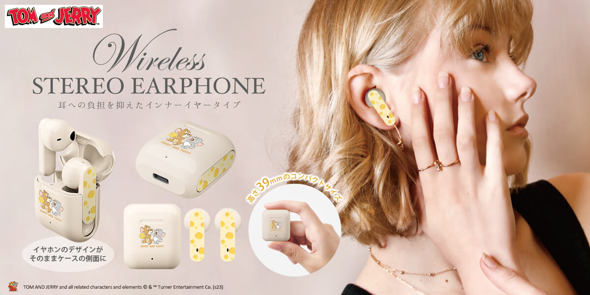 「ジェリー」と「タフィー」のかわいすぎるイラストがうれしい、耳への負担を抑えたインナーイヤータイプ完全独立型ワイヤレスステレオイヤホン!