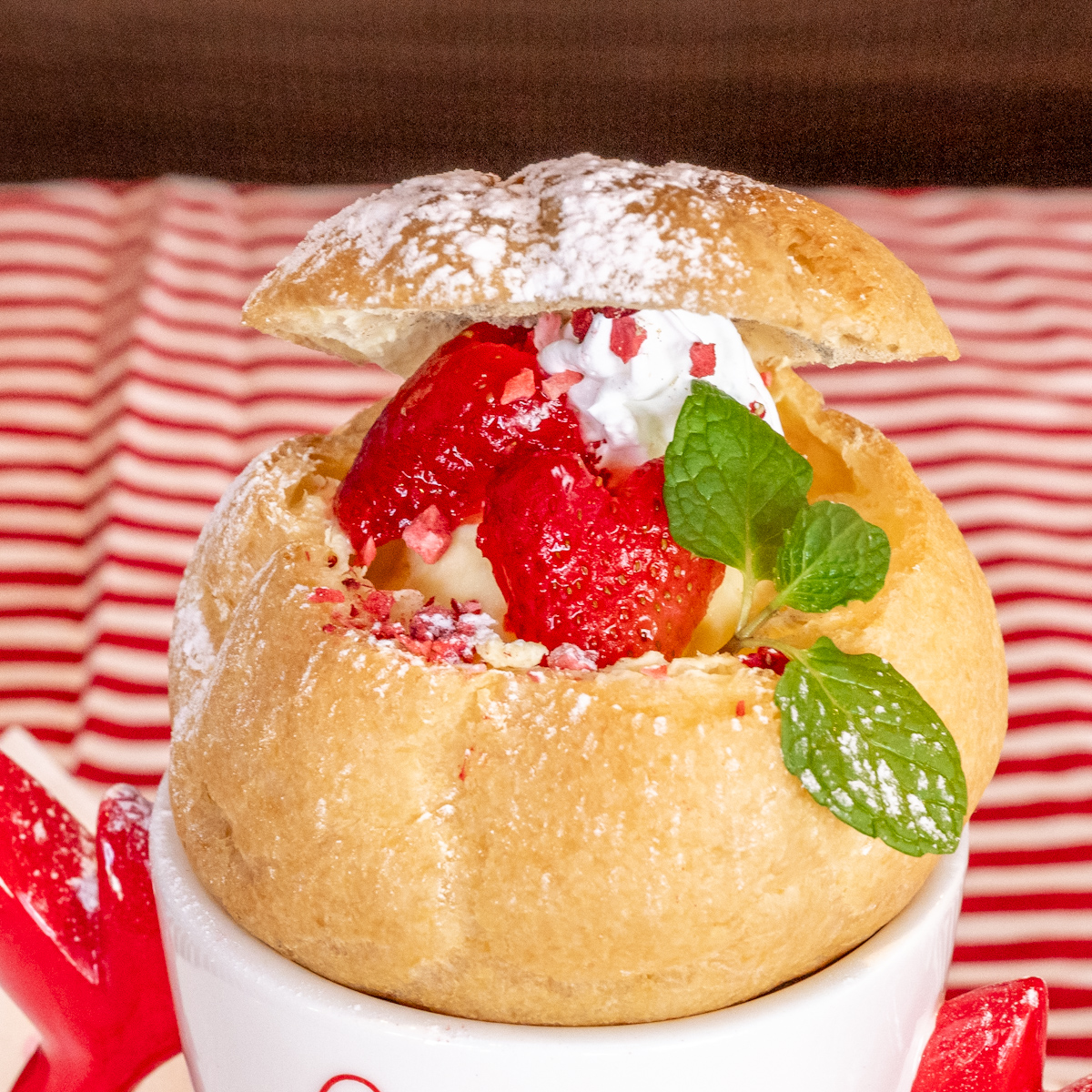 カルダモンの爽やかな風味にホイップ&キャラメルアイス、そしてラブリーなストロベリーの組み合わせはマグカップの中に入ったホットモカと相性抜群!