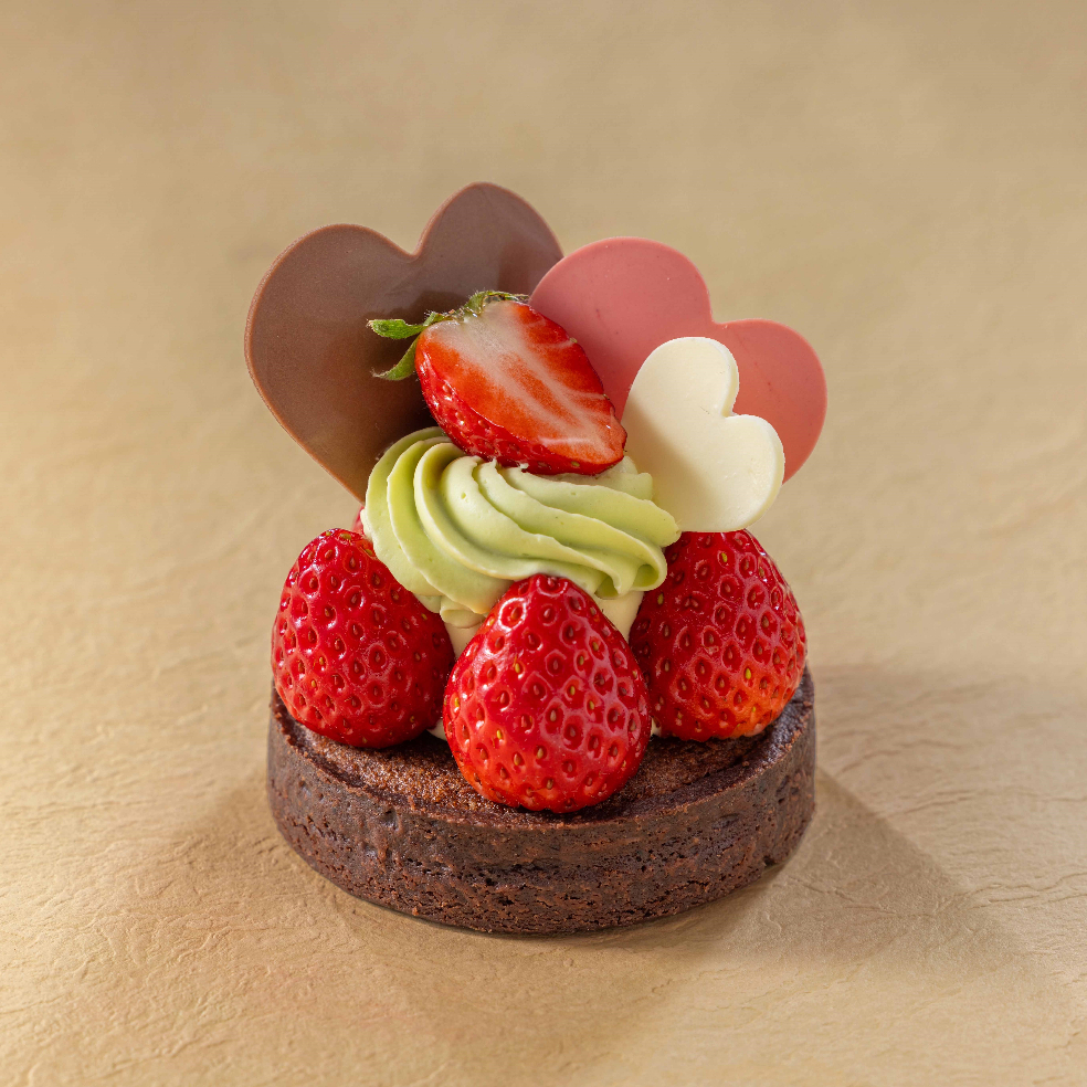 風味豊かに焼き上げたタルト生地にいちごの甘酸っぱさ、カスタードとピスタチオのまろやかなクリームが織りなすバランスが珠玉のケーキです☆