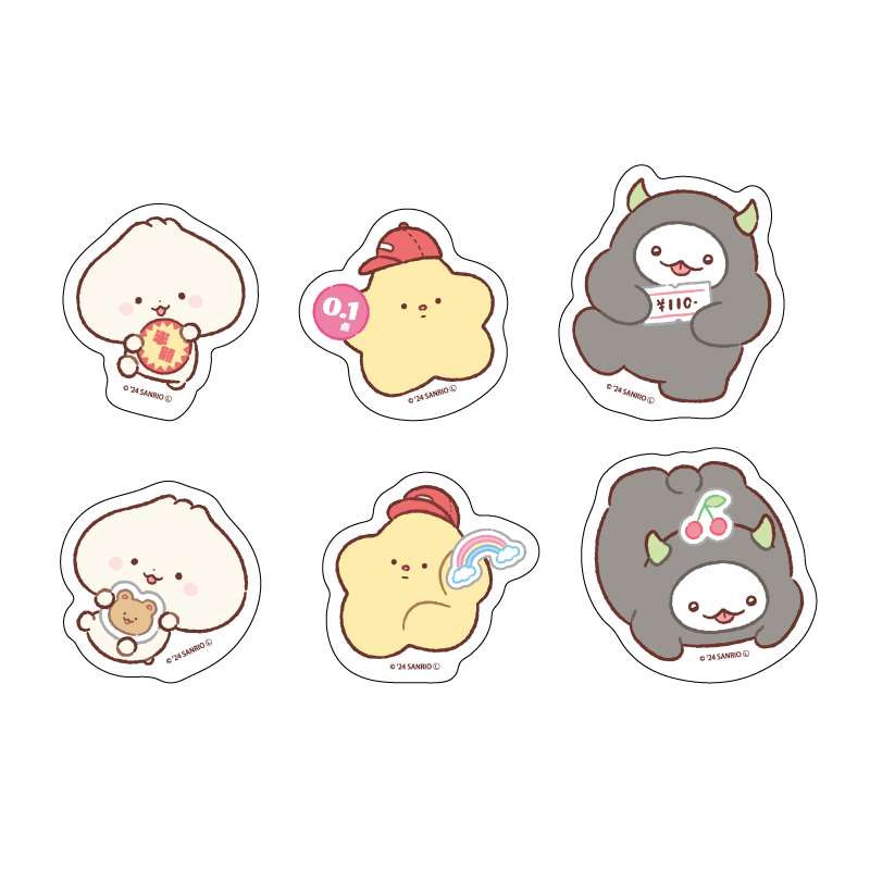 「ぱお」「スズキ」「ツノ」が「ちきう」のシールを手に喜ぶ姿など、全6種類から1枚がランダムで封入されます。