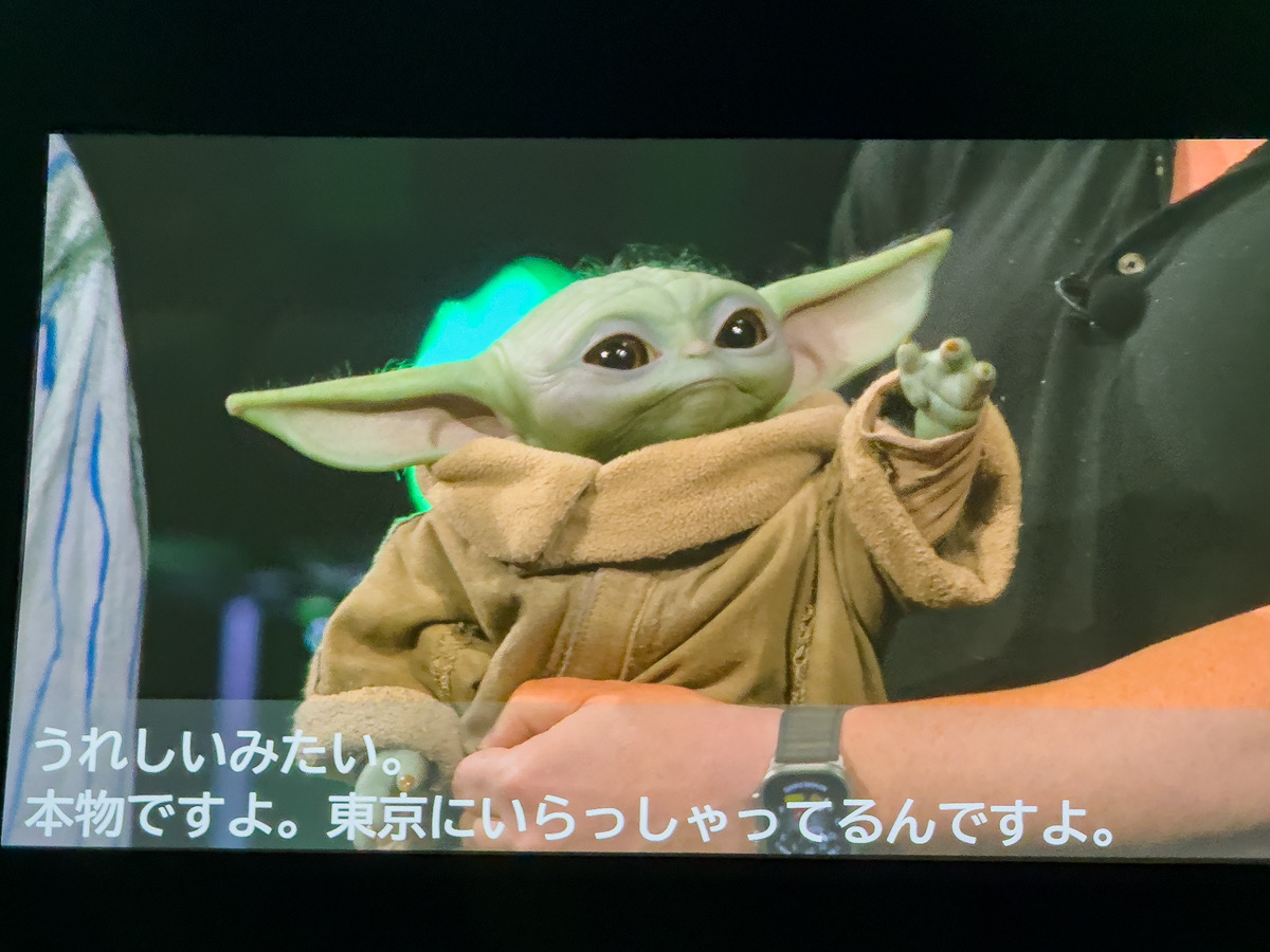小さな体で会場に手を振るしぐさを見せるなんともキュートなグローグーが初来日を果たしました。
