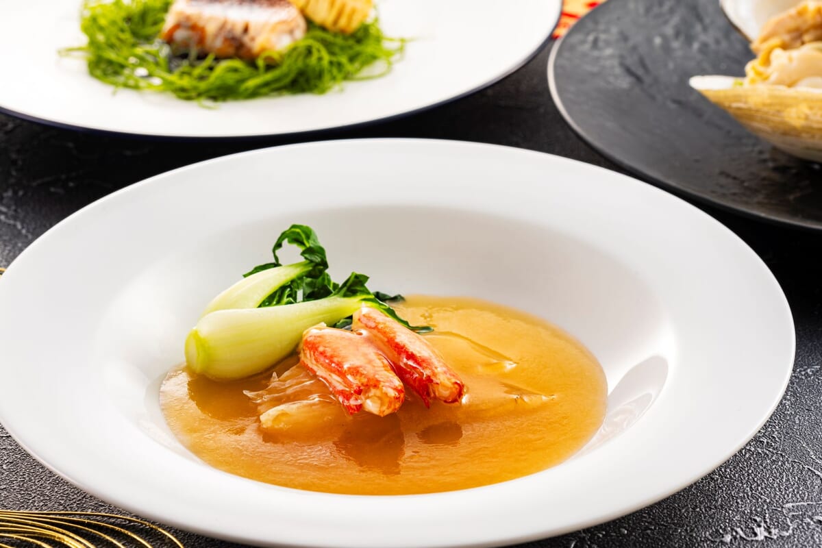 縁起が良いとされている赤色の食材として“蟹”を使用し、ふかひれの姿煮と合わせた贅沢な一品「海のコラーゲンの姿煮 開運毛蟹あんかけ仕立て」や、