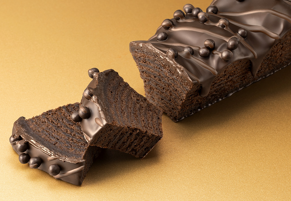 ずっしり重厚で濃密にとろける味わいは、まるで“バームクーヘンのショコラテリーヌ”。